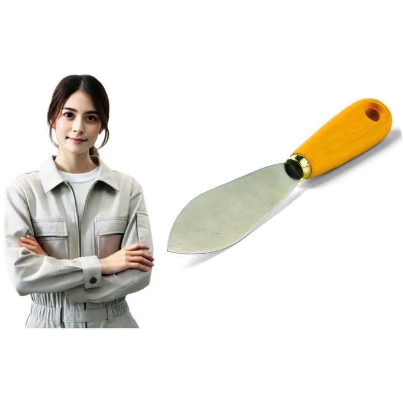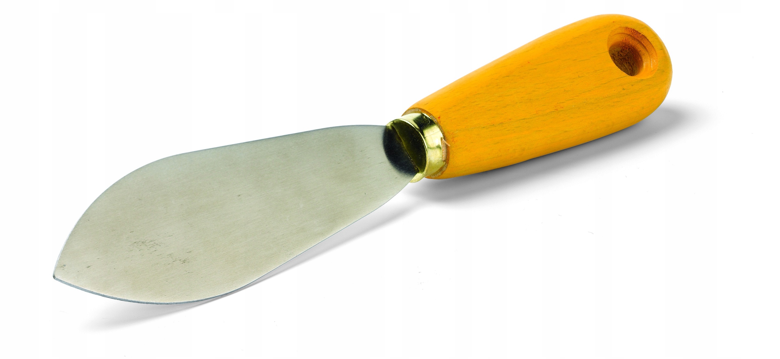 Zaokrąglony nóż do kitu szklarskiego, idealny do osadzania szyb w ramach okiennych i drzwiowych.