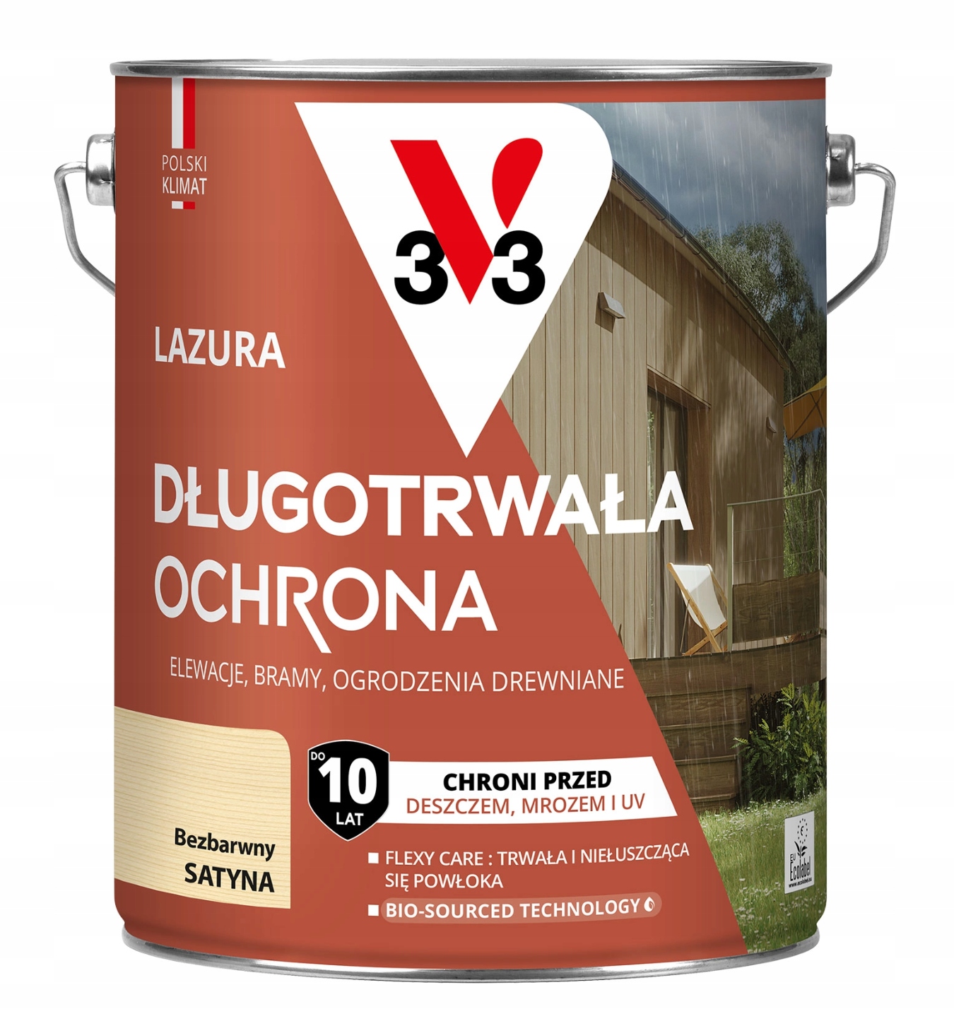 Produkt chroni drewno przed promieniowaniem UV, deszczem, śniegiem i mrozem, zapewniając trwałość nawet w trudnych warunkach pogodowych.