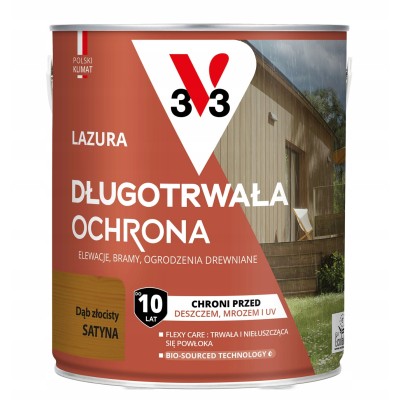 Lazura 10 lat ochrony dąb złocisty satyna 2.5 l V33 to doskonały wybór do ochrony drewna na długie lata. Produkt marki V33 zapewnia nie tylko piękne wykończenie w kolorze dębu złocistego, ale także trwałą ochronę przed warunkami atmosferycznymi. Lazura cechuje się wysoką jakością, a 2.5 litrowe opakowanie sprawia, że starczy na większe powierzchnie. Dzięki temu produktowi możesz cieszyć się pięknym i chronionym drewnem przez wiele lat. Idealna lazura do architektury ogrodowej!