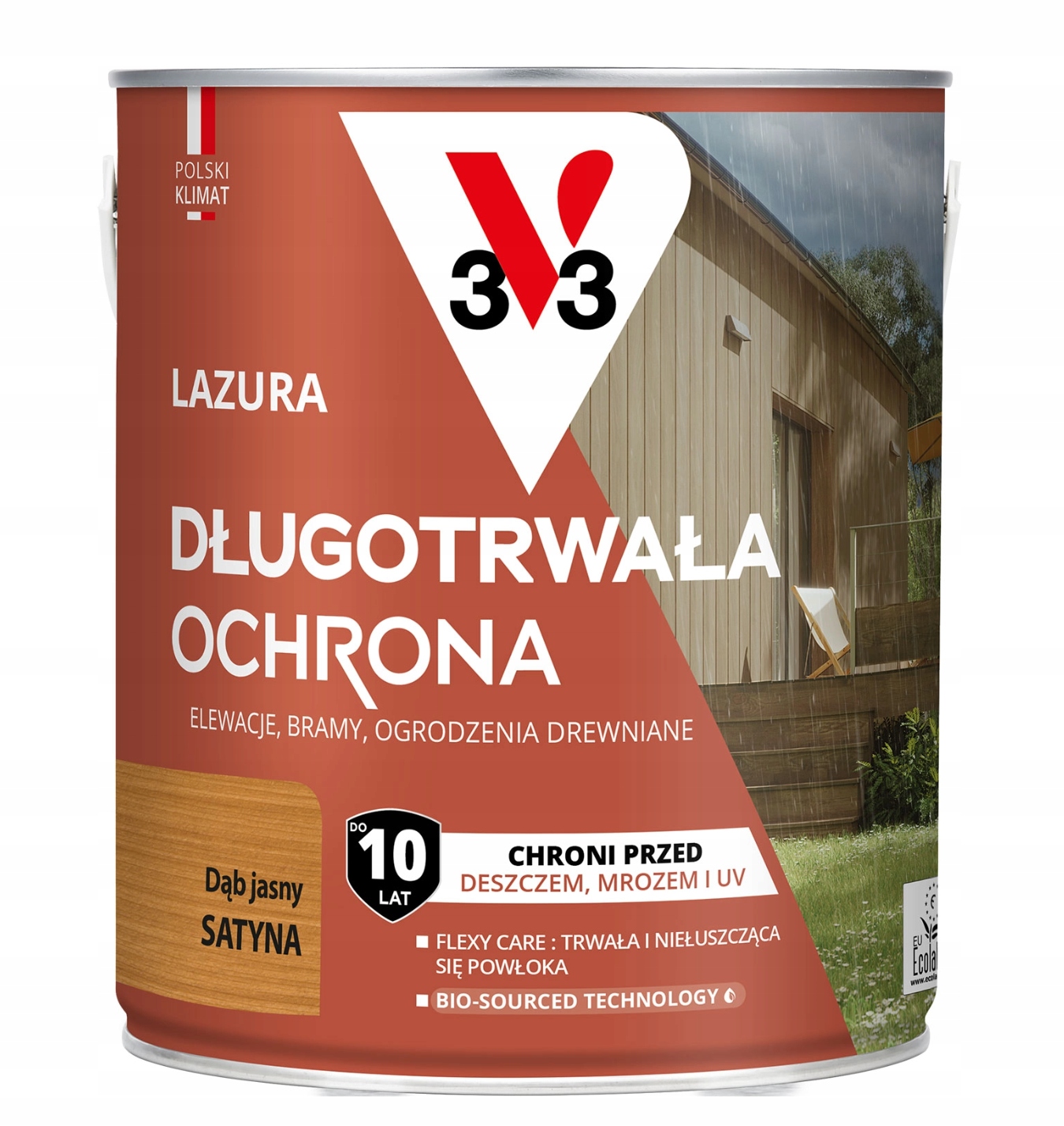 Produkt chroni drewno przed promieniowaniem UV, deszczem, śniegiem i mrozem, zapewniając trwałość nawet w trudnych warunkach pogodowych.
