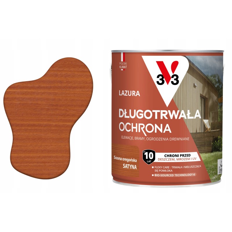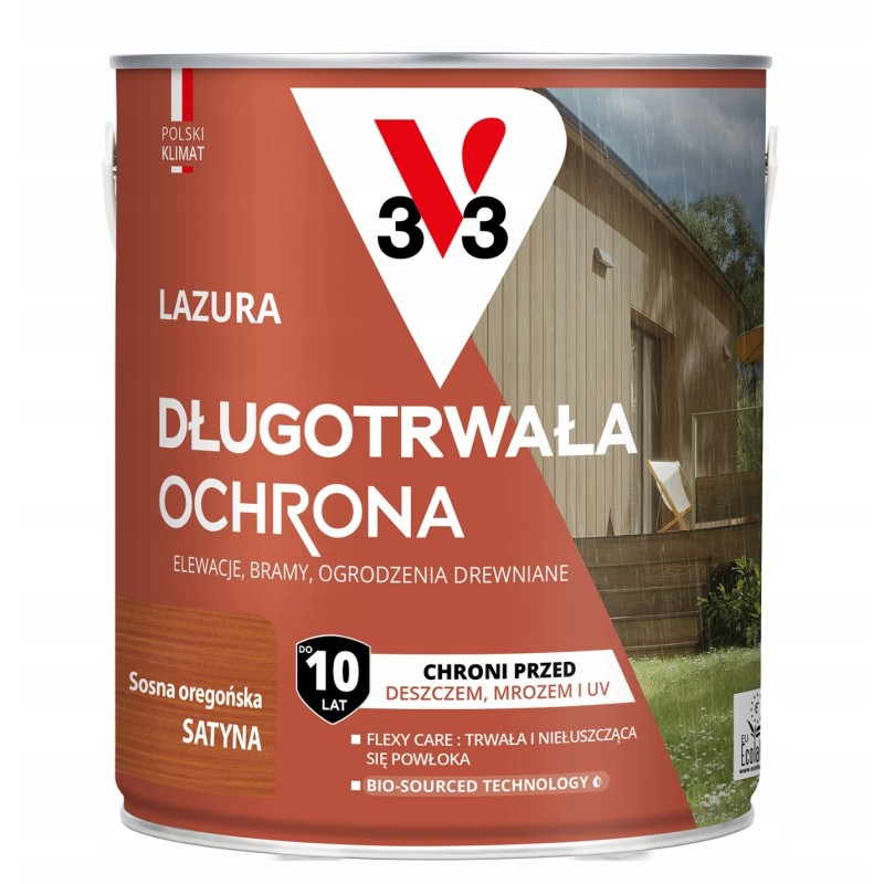 Lazura 10 lat ochrony sosna oregońska satyna 2.5 l V33 to doskonały wybór dla osób poszukujących trwałego i efektywnego produktu do ochrony drewna. Stanowi idealne połączenie ochrony i pięknego wykończenia w jednym. Lazura V33 zapewnia 10 lat trwałej ochrony, dzięki czemu drewno będzie zachowane w doskonałym stanie na długie lata. Produkt jest nowy, w oryginalnym opakowaniu, marki V33. Pojemność 2.5 litra wystarcza nawet na większe powierzchnie, a satynowe wykończenie dodaje elegancji. Idealny wybór dla miłośników naturalnego wyglądu drewna.