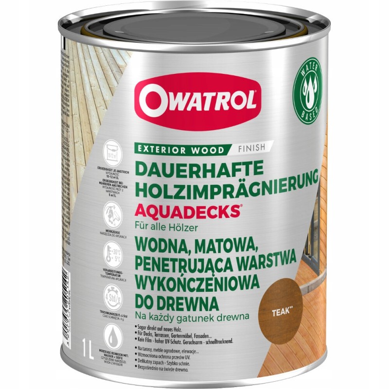 AQUADECKS saturator do wszystkich gatunków drewna to idealne rozwiązanie dla Twojego tarasu. Ten olejek marki Owatrol, o pojemności 1 litra, zapewnia ochronę drewna przed warunkami atmosferycznymi, promieniami UV i wodą. Dzięki temu, Twój taras będzie wyglądał świeżo i nowocześnie przez długi czas. Produkt ten jest łatwy w użyciu i doskonale nadaje się do wszystkich rodzajów drewna. Ciesz się pięknem i trwałością swojego tarasu dzięki AQUADECKS saturatorowi!