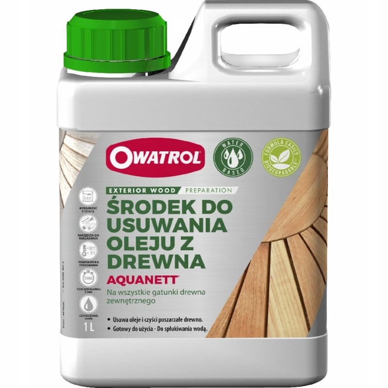Nasze środki do usuwania starych powłok są niezastąpione w pielęgnacji mebli ogrodowych, ogrodzeń i tarasów drewnianych. AQUANETT 1L, marki Owatrol, to profesjonalny środek czyszczący o pojemności 1 litra. Stan nowy, opakowanie oryginalne - gwarantujemy najwyższą jakość produktu. Waga z opakowaniem jednostkowym to 2.81 kg, a wielkość opakowania sięga do 1 litra. Wyjątkowa formuła produktu sprawia, że jest idealny do użytku zewnętrznego. Odkryj skuteczność AQUANETT i odśwież swoje przestrzenie!