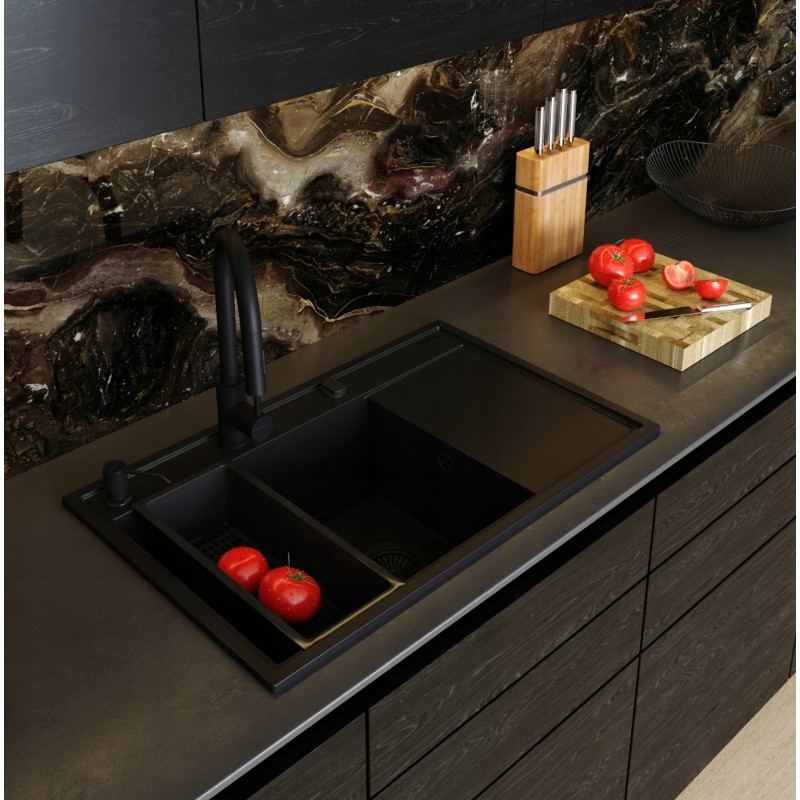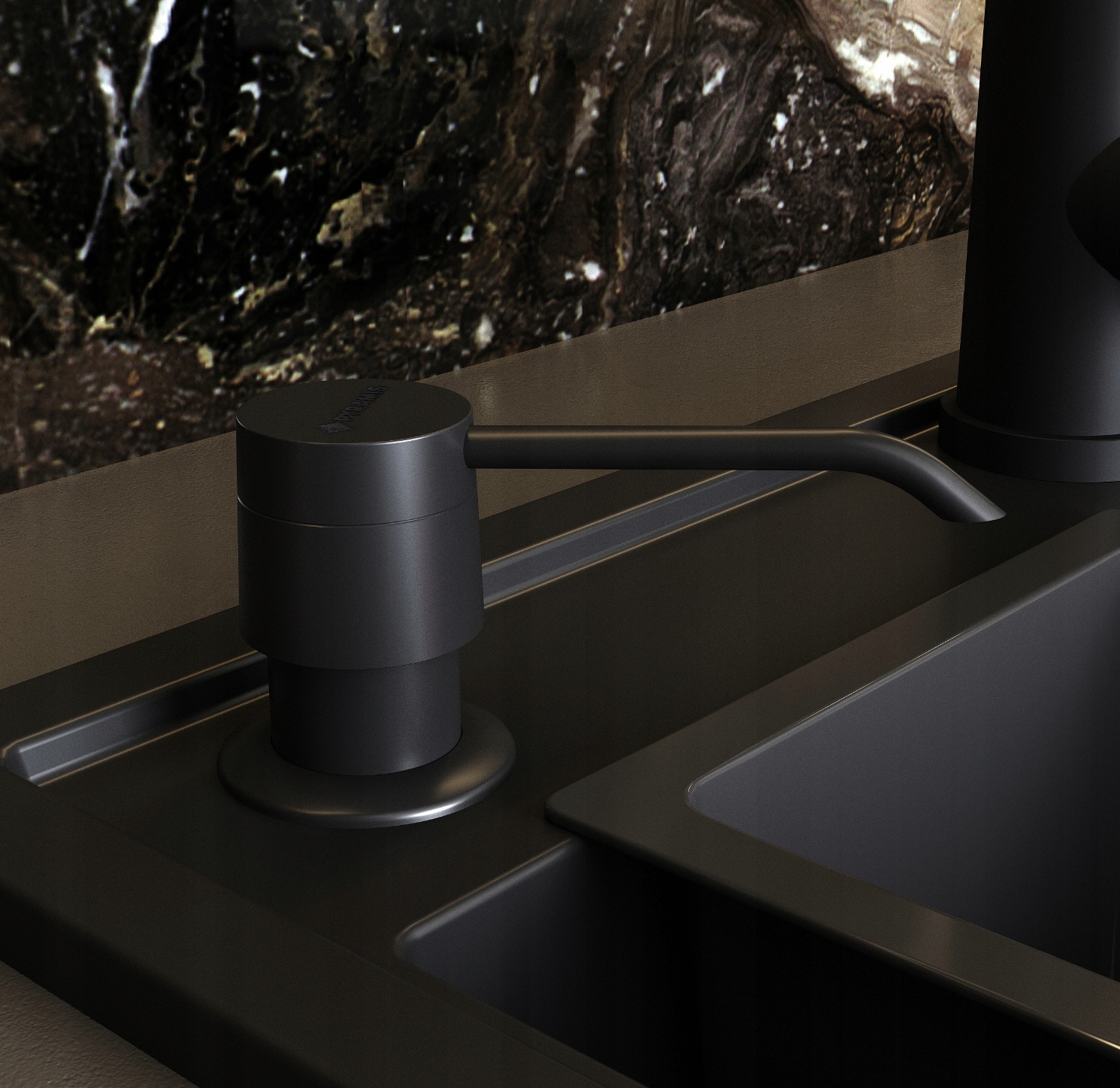 Oprócz czysto technicznej funkcji, którą pełni akcesorium, dozownik to także świetny element dekoracyjny. Jego minimalistyczny design i dopasowana kolorystyka dopełnia płaszczyznę zlewozmywaka tworząc spójną i estetyczną przestrzeń roboczą.