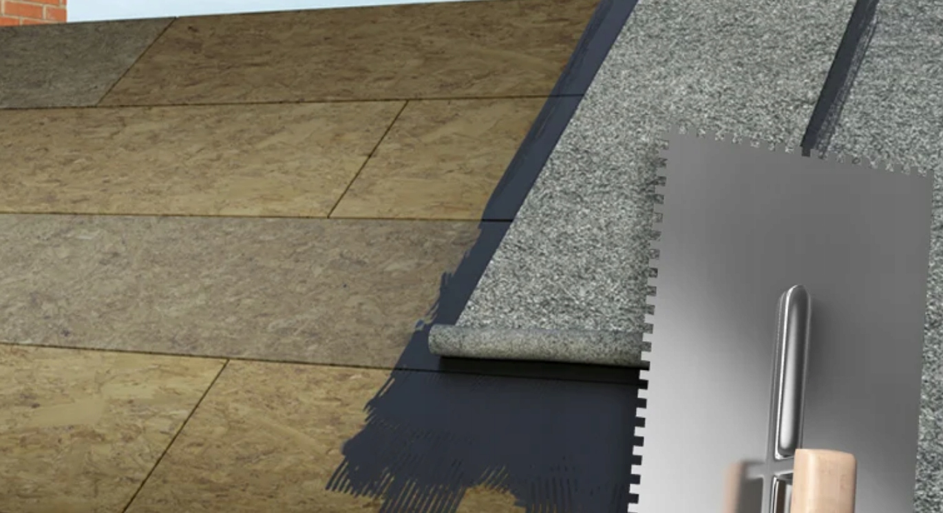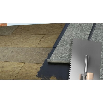 ✅ Nakładać na podłoże za pomocą pacy zębatej 6 lub 8 mm na szerokość papy. Następnie ułożyć arkusz papy, dociskając do podłoża czystą pacą stalową.