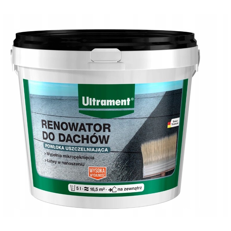 Ultrament Renowator do Dachów i Papy 5l to doskonały wybór dla osób poszukujących skutecznego środka do renowacji dachów. Produkt ten jest fabrycznie nowy, zapakowany w oryginalne opakowanie marki Ultrament. Kod producenta to 8244090 019, a pojemność wynosi 5 litrów. Renowator cechuje się kolorowymi właściwościami, ponieważ jest w kolorze czarnym. Idealnie nadaje się do stosowania w kategorii Farby i uszczelniacze do dachów. Dzięki temu preparatowi Twój dach odzyska dawny blask i ochronę przed warunkami atmosferycznymi.