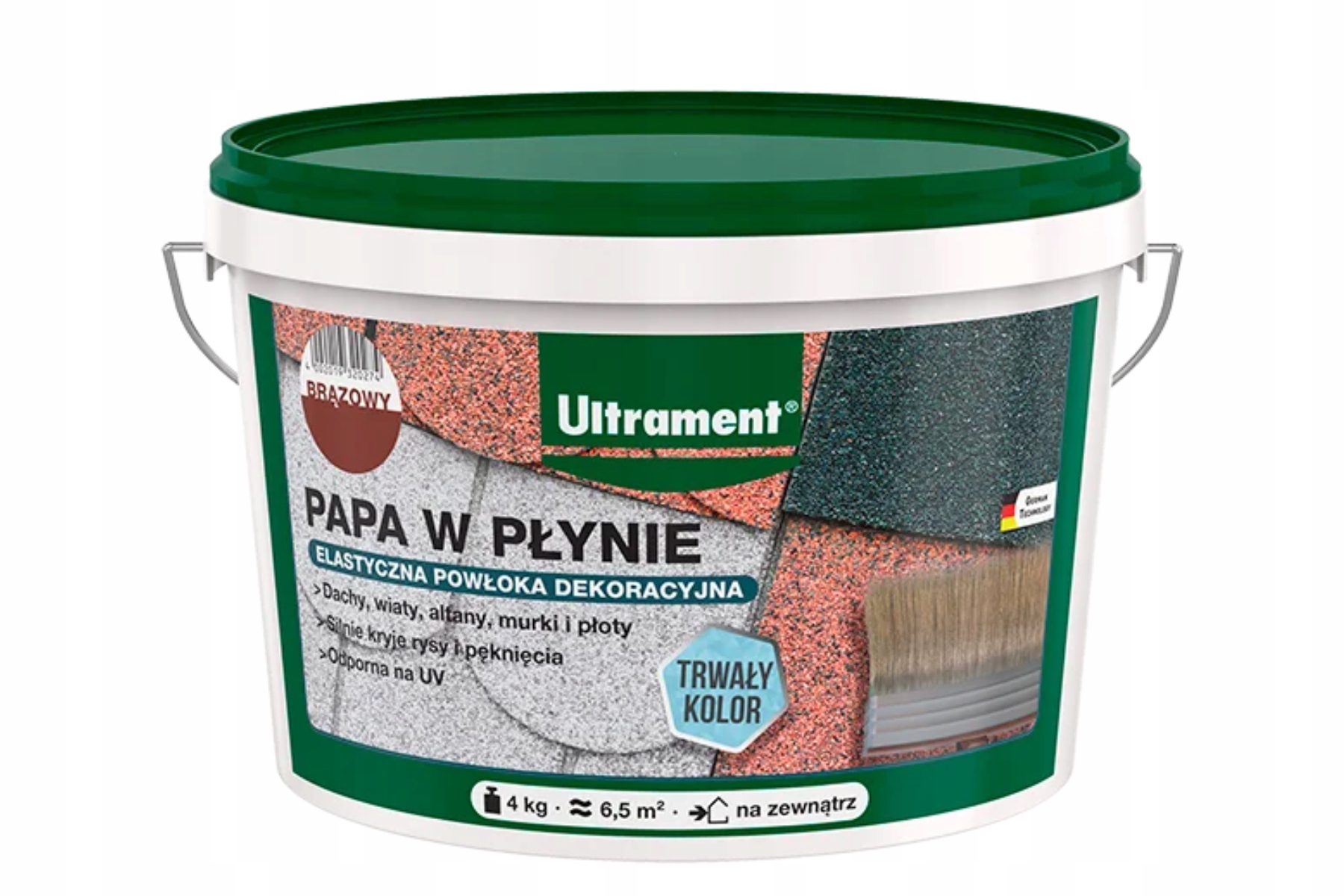 Ultrament Papa W Płynie 4KG to innowacyjny renowator dachów, który zapewnia trwałą ochronę i uszczelnienie. Ten brązowy elastyczny produkt ma pojemność 4 litrów i jest idealny do naprawy oraz konserwacji dachów. Stan opakowania jest oryginalny, a kod producenta to 4002109320274. Marka Ultrament gwarantuje wysoką jakość i skuteczność. Ten produkt jest niezbędnym narzędziem dla wszystkich, którzy chcą zadbać o swoje dachy. Daj swojemu dachowi najlepszą ochronę z Ultrament Papa W Płynie 4KG!