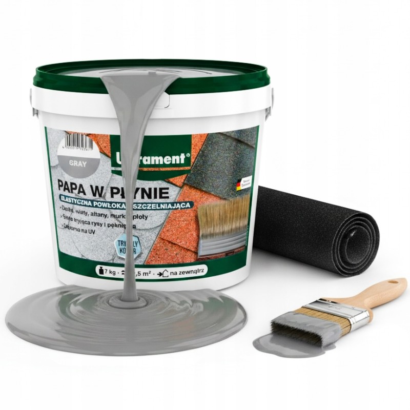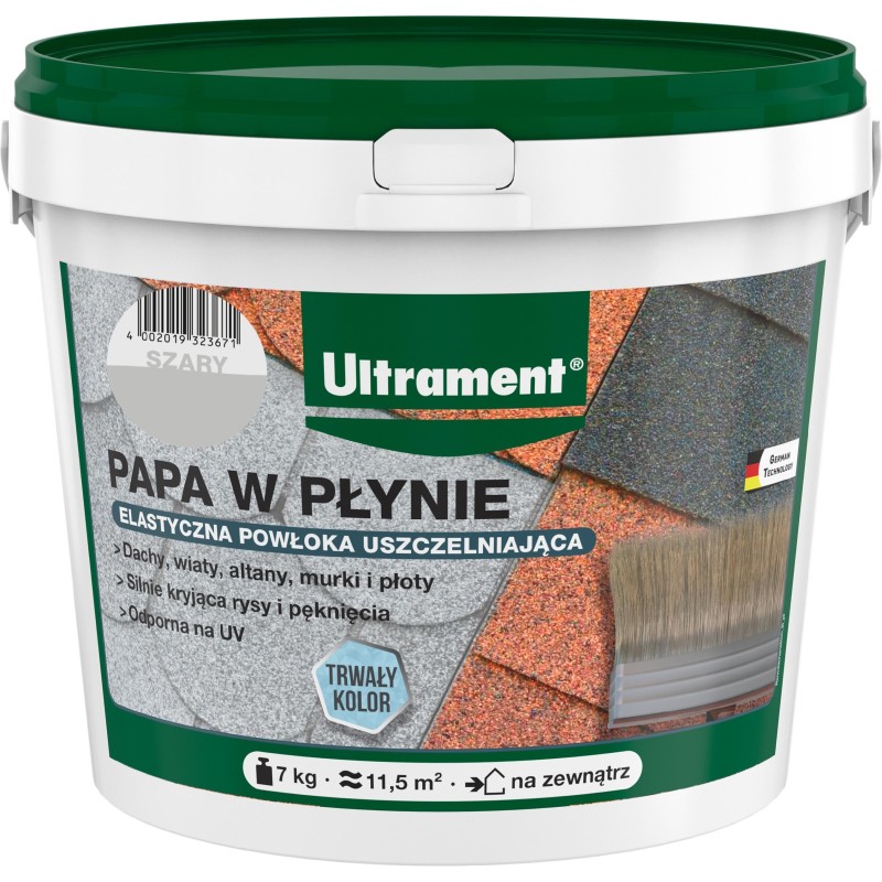Papa w płynie uniwersalna Ultrament to doskonałe rozwiązanie do renowacji dachówek, blachy, gontów oraz ogrodzeń. Produkt w kolorze szarym, o wadze 7kg, zapewnia nowy stan powierzchni. Oryginalne opakowanie gwarantuje jakość, a kod producenta 4002019323671 potwierdza autentyczność. Pojemność produktu wynosi 7 litrów, co wystarcza na większe projekty. Dzięki piance aplikacyjnej praca staje się łatwa i przyjemna. Wzbogać swój domowy warsztat o tę uniwersalną papę!
