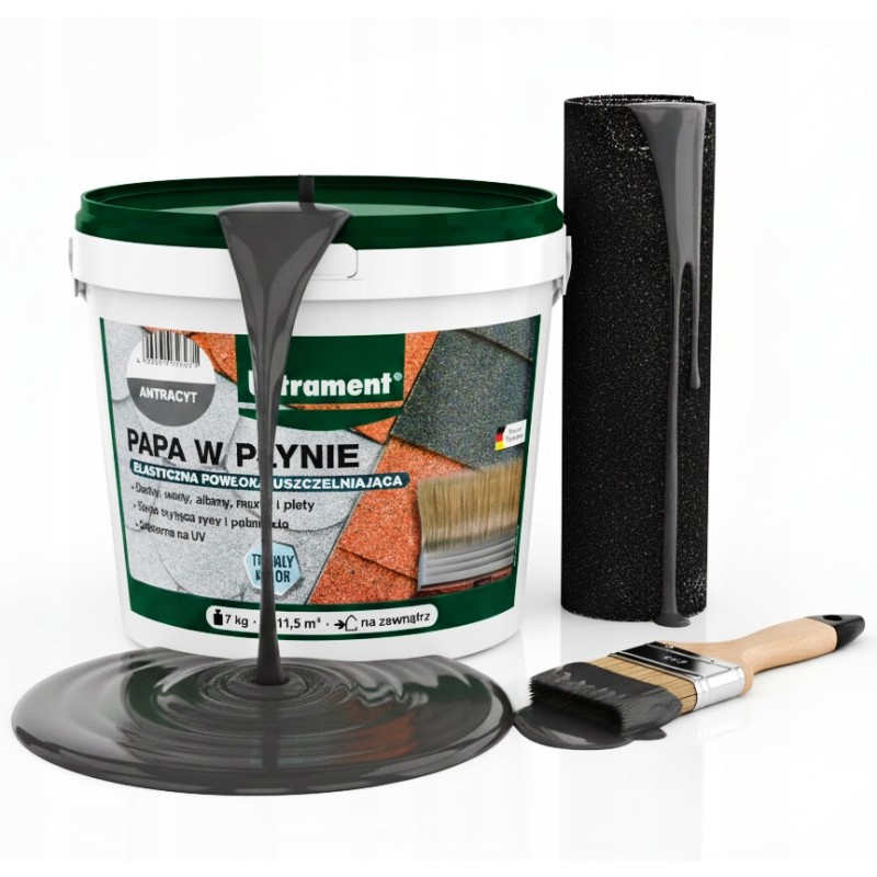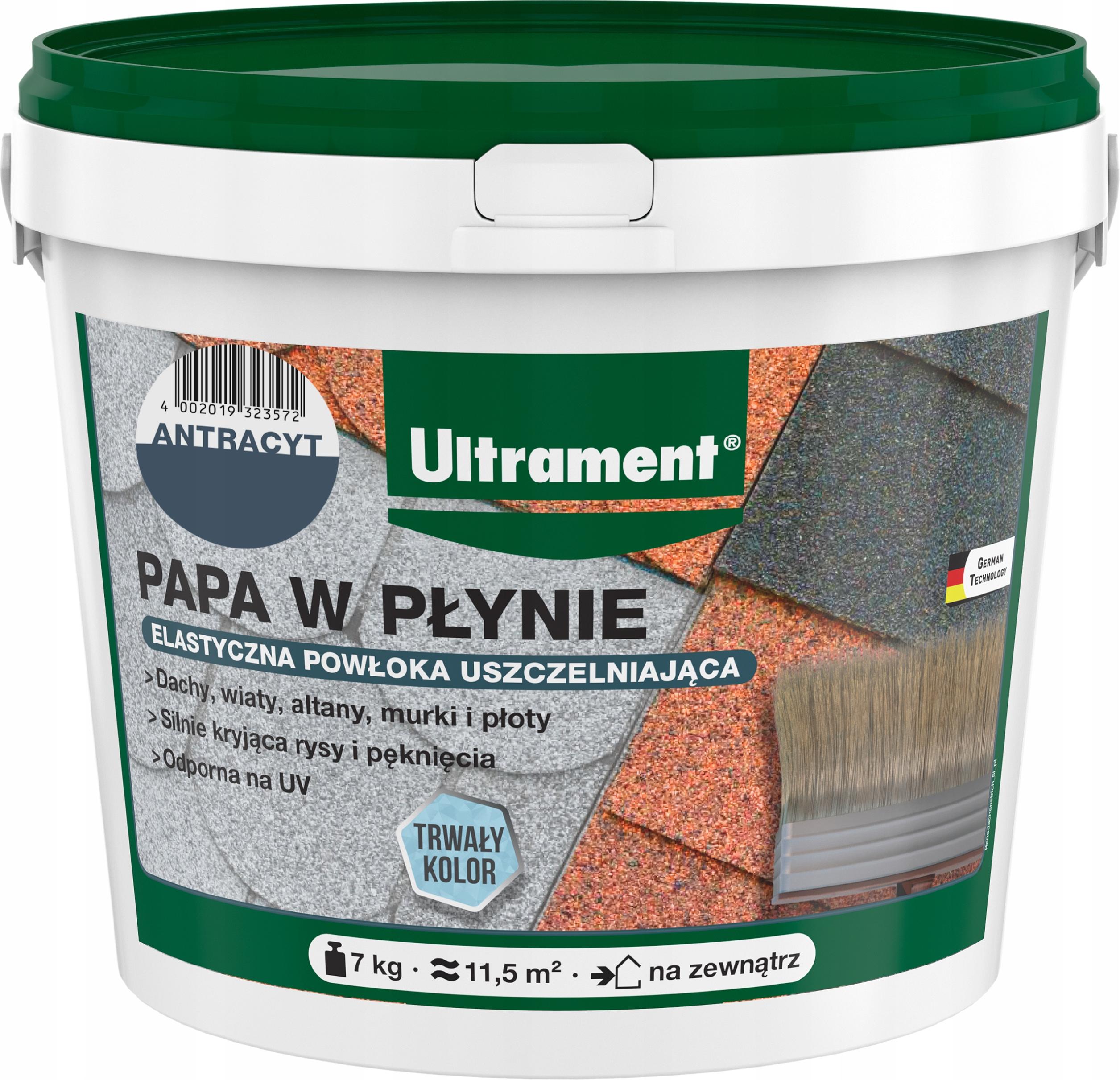 Ultrament Papa W Płynie 7KG Antracyt to elastyczna powłoka uszczelniająca, idealna do dachów. Produkt jest nowy, w oryginalnym opakowaniu marki Ultrament. Kod producenta to 4002019323572, a EAN to również 4002019323572. Waga produktu wynosi 7 kg, a z opakowaniem jednostkowym 7.2 kg. Kolor to elegancki szary, który doskonale pasuje do różnych stylów domów. Ta uniwersalna powłoka renowacyjna zapewnia trwałą ochronę przed warunkami atmosferycznymi. Jakość marki Ultrament gwarantuje skuteczność i wydajność.