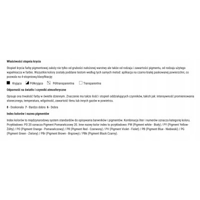 Farba oferuje bardzo dobrą jakość w przystępnej cenie, co czyni ją świetnym wyborem dla początkujących artystów oraz studentów kierunków artystycznych.