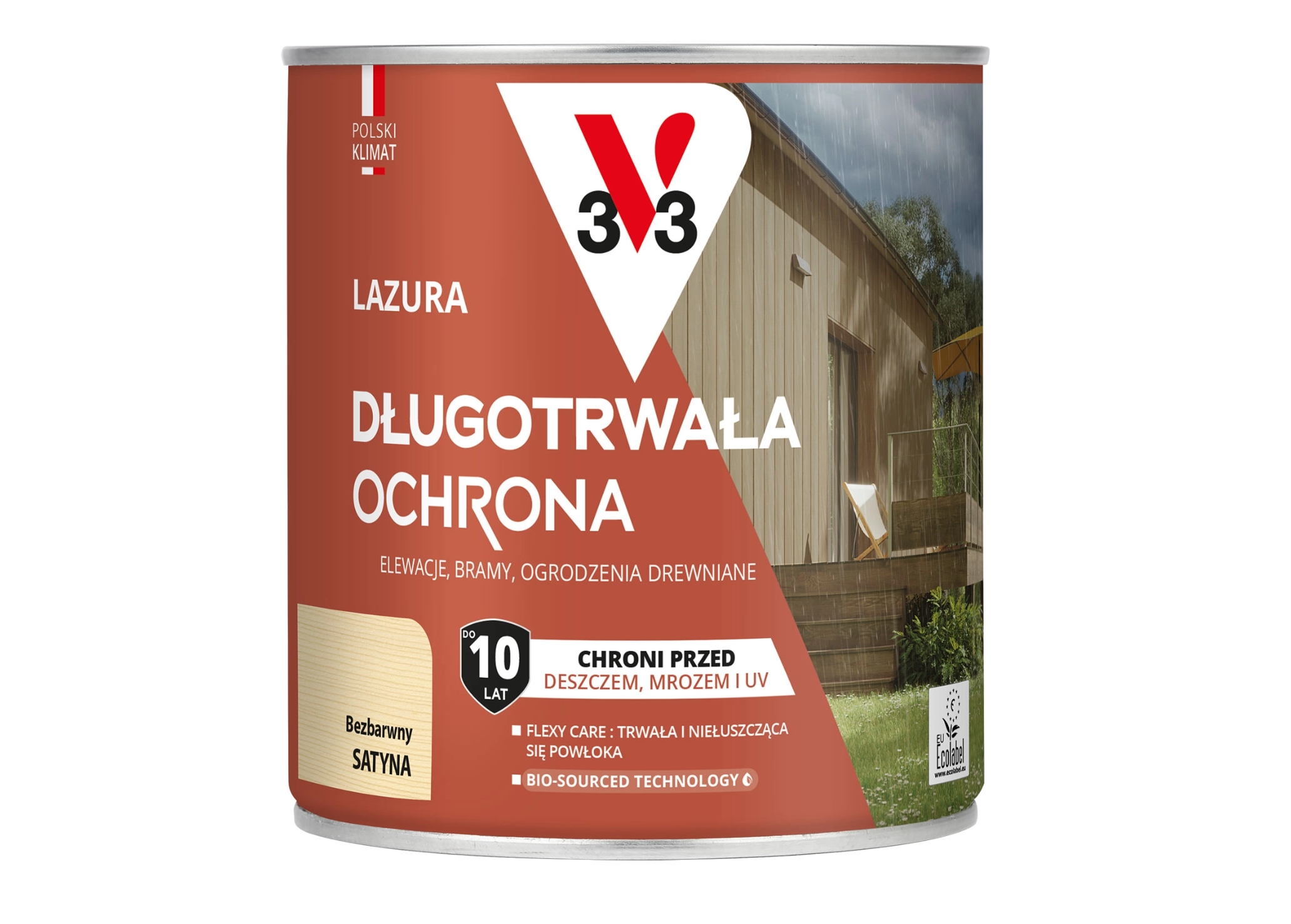 Nasz produkt to bezbarwna lazura w kolorze satyny o pojemności 0,75 l, która zapewnia aż 10 lat ochrony. Stanowi doskonałe rozwiązanie do zabezpieczenia drewnianych powierzchni przed działaniem czynników zewnętrznych. Lazura marki V33 jest nowa i znajduje się w oryginalnym opakowaniu baniaka. Kod producenta to V33, a kod EAN to 3153895231695. Ten produkt doskonale sprawdzi się w kategorii farb, zapewniając trwałą ochronę i piękny wygląd drewnianych elementów.