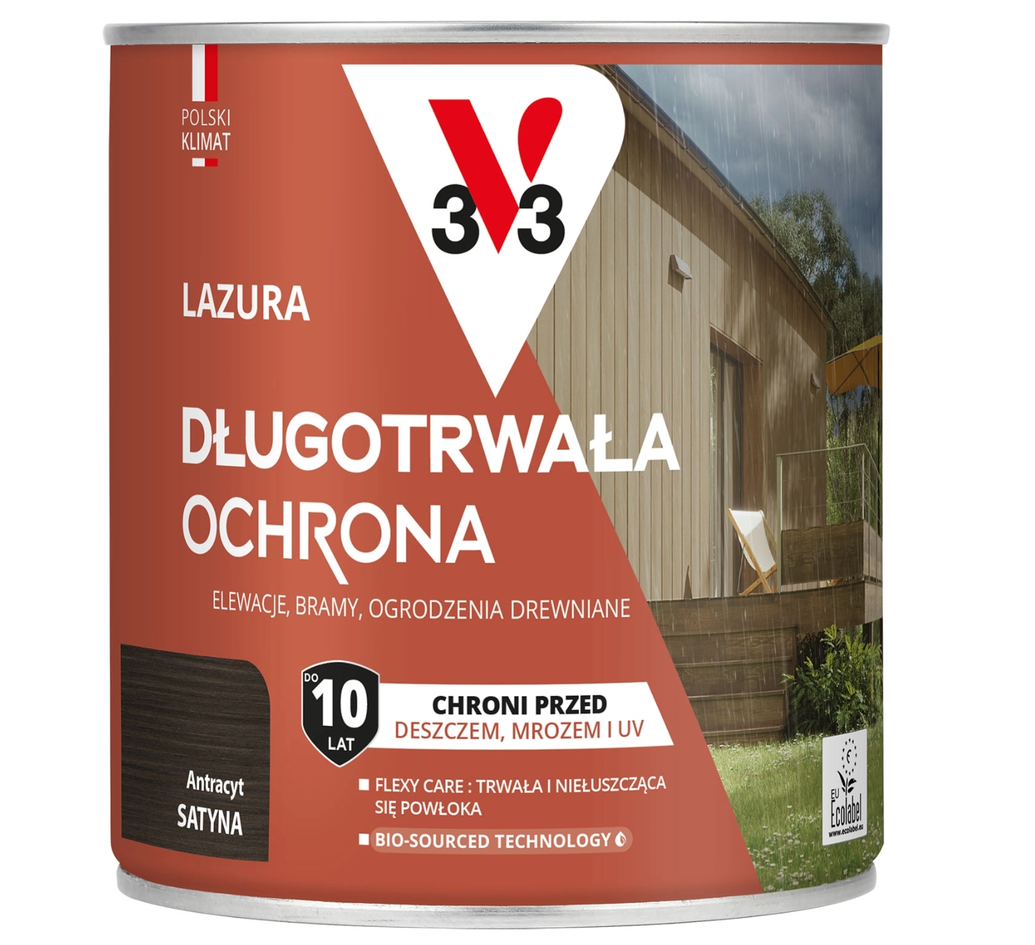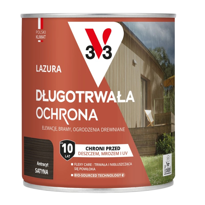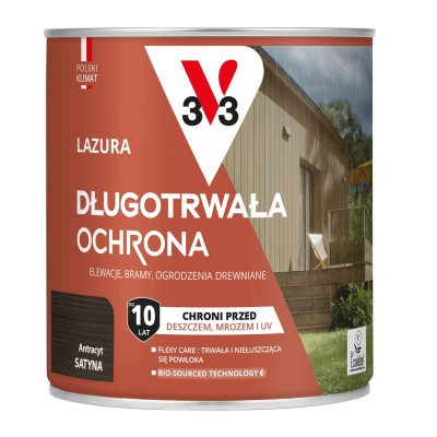 Produkt chroni drewno przed promieniowaniem UV, deszczem, śniegiem i mrozem, zapewniając trwałość nawet w trudnych warunkach pogodowych.