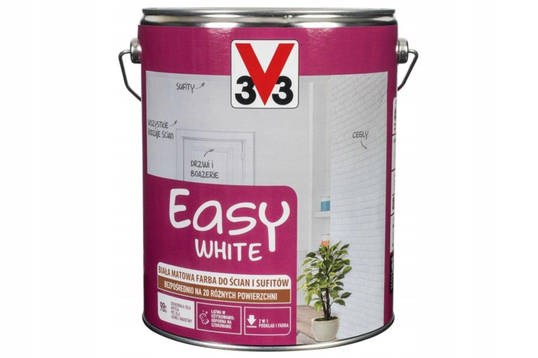 3V3 White to innowacyjna farba do ścian, mebli i drewna, odporna na plamy oraz wodę. Ta ceramiczna farba akrylowa marki V33 ma matowy stopień połysku, co dodaje elegancji każdemu pomieszczeniu. Farba jest łatwa w aplikacji, szybko schnie i ma wysoką wydajność. Nie tylko odświeża powierzchnie, ale także zapewnia ochronę przed uszkodzeniami. Produkt jest nowy, w oryginalnym opakowaniu, ważący 15 kg. Wybierz 3V3 White, aby stworzyć trwałe i piękne wnętrza!