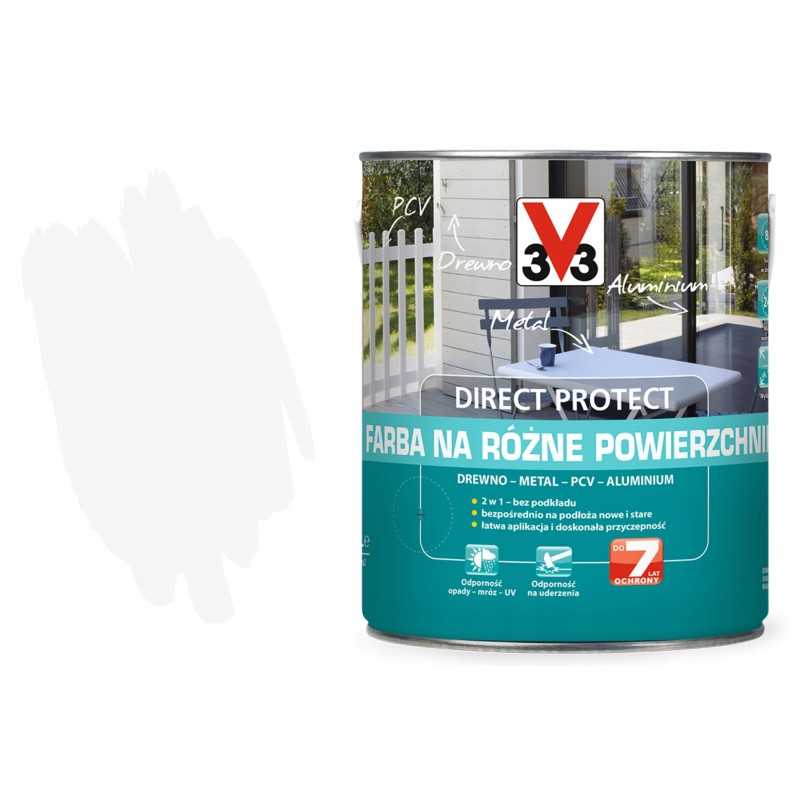 Farby Direct Protect V33 nie stosować na podłogi, podłoża murowane, drewno olejowane lub woskowane oraz na elementy z giętkiego plastiku (np. plastikowe meble ogrodowe, doniczki itp.).