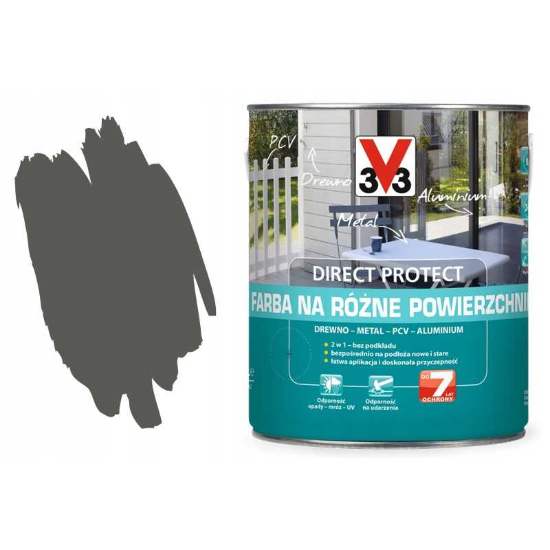 Farby Direct Protect V33 nie stosować na podłogi, podłoża murowane, drewno olejowane lub woskowane oraz na elementy z giętkiego plastiku (np. plastikowe meble ogrodowe, doniczki itp.).