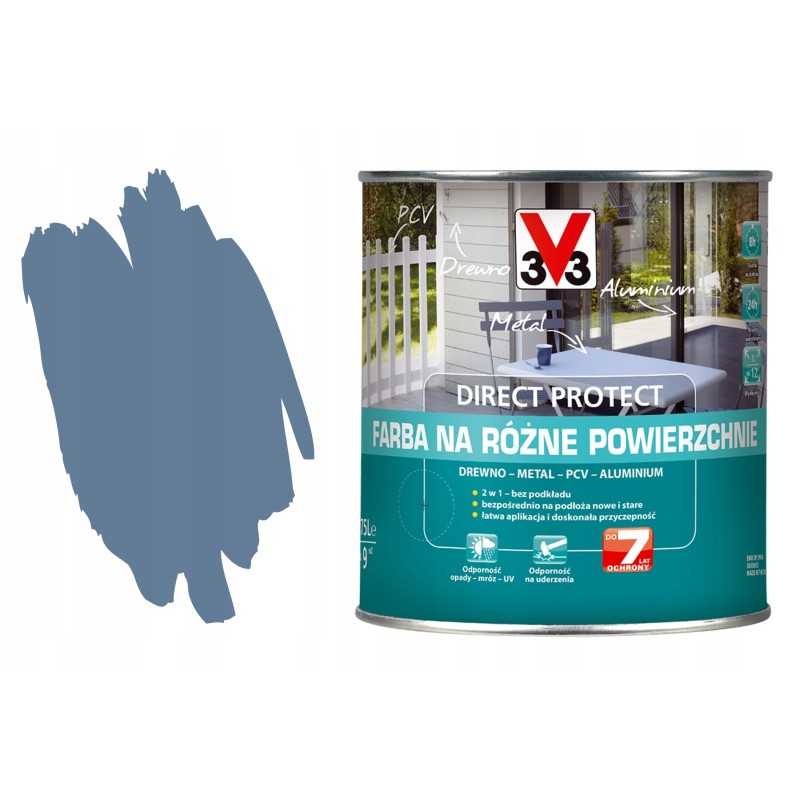 Farby Direct Protect V33 nie stosować na podłogi, podłoża murowane, drewno olejowane lub woskowane oraz na elementy z giętkiego plastiku (np. plastikowe meble ogrodowe, doniczki itp.).