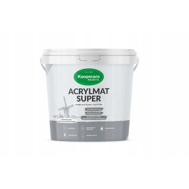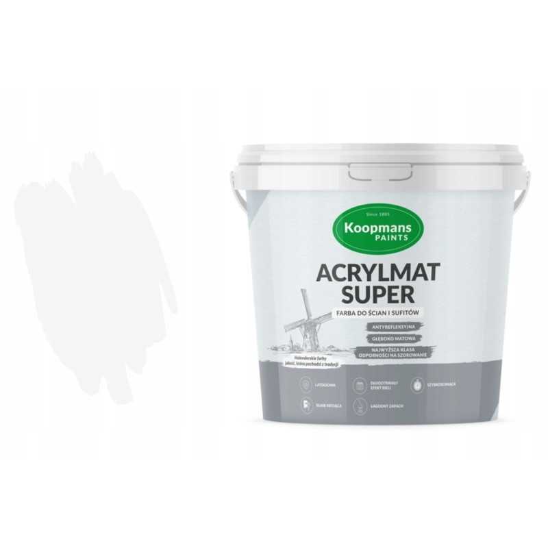 Farba akrylowa Koopmans ACRYLMAT SUPER 0,9 L to doskonały wybór do malowania ścian, sufitów, betonu i cegły. Produkt jest nowy i zapakowany w oryginalne opakowanie. Farba ma matowy stopień połysku i dostępna jest w kolorze białym. Deklarowana wydajność wynosi 10 m² na litr. Dzięki wyjątkowej formule akrylowej, farba zapewnia trwałe i estetyczne wykończenie powierzchni. Niezawodność marki Koopmans gwarantuje wysoką jakość produktu. Sprawdź teraz farbę Koopmans ACRYLMAT SUPER 0,9 L i odśwież swój dom!