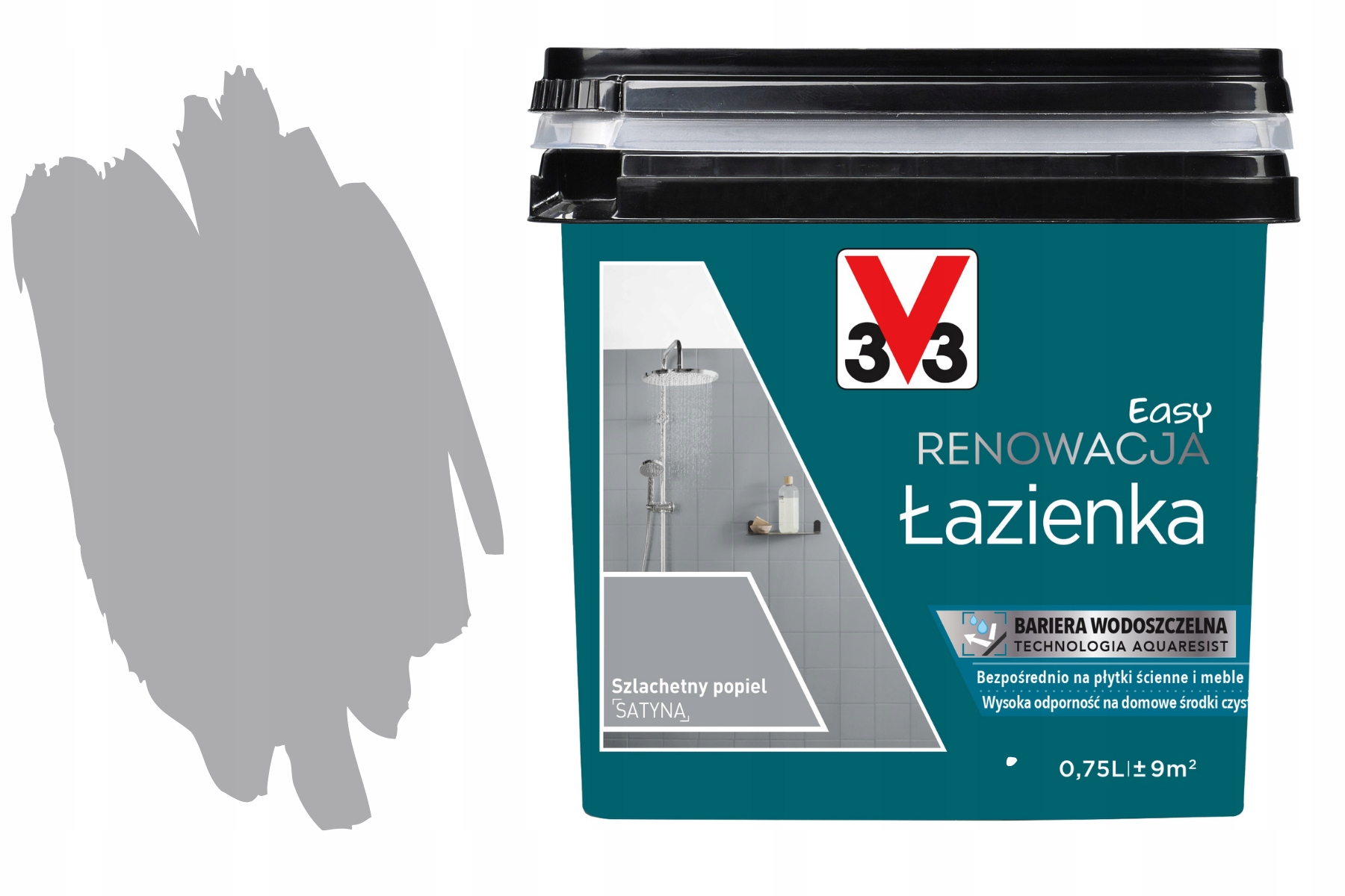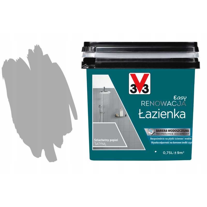 3V3 Farba Akryl Eko Wodna Kafli PCV Szybka Odnowa Boazerie Ceramic 0.75L to idealne rozwiązanie do odświeżenia drewna, mebli czy płytek. W pełni ekologiczna formuła sprawia, że farba jest przyjazna dla środowiska. W kolorze Szlachetny Popiel z połyskiem satyny, zapewnia elegancki wygląd wnętrz. Deklarowana wydajność to aż 12 m², a szybki czas schnięcia (8 godzin do dotyku) oraz całkowitego wyschnięcia (24 godziny) sprawiają, że praca przebiega szybko i sprawnie. Farba nie wymaga rozcieńczania, co ułatwia jej aplikację. Ożyw swoje wnętrza z 3V3 Farbą Akrylową!