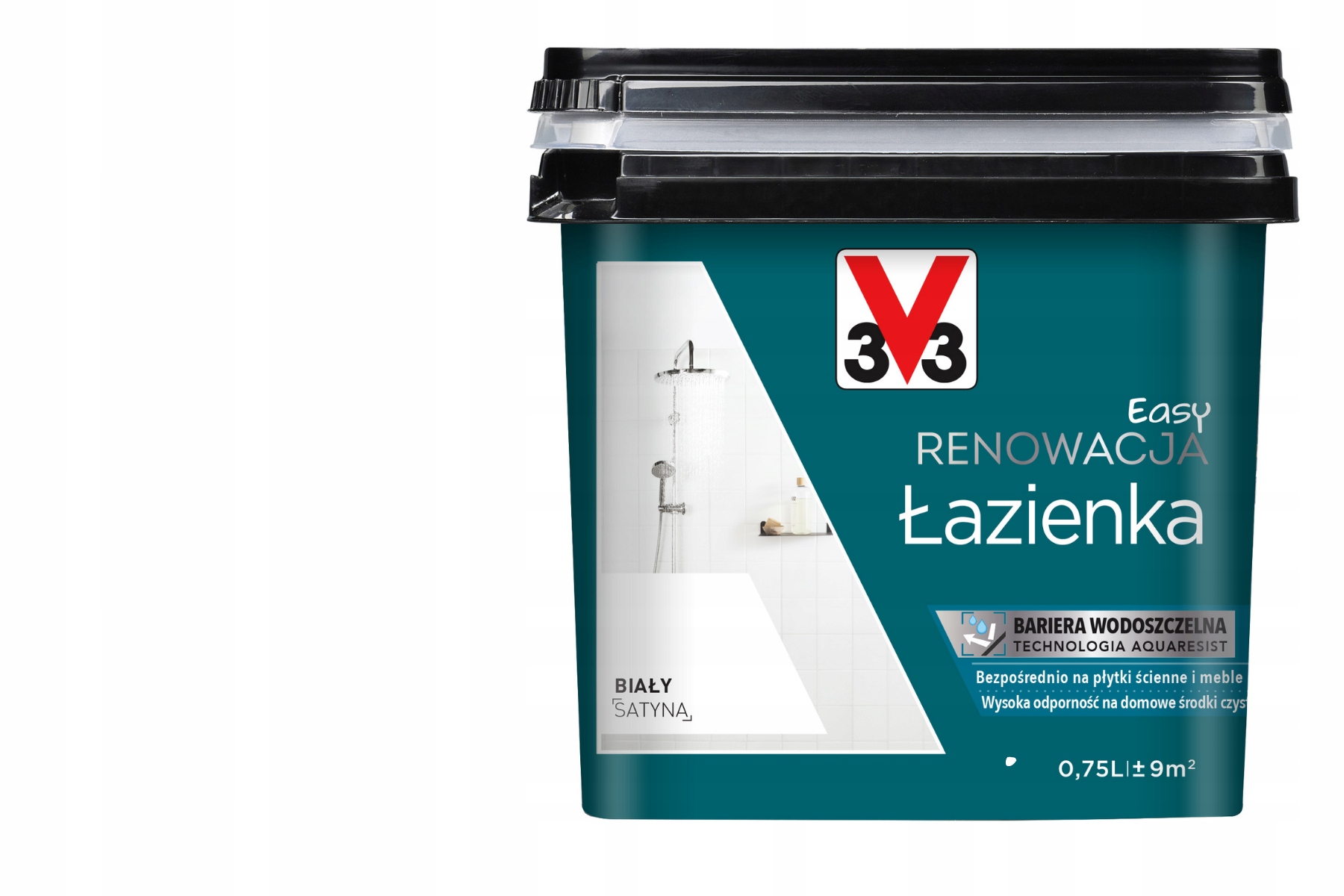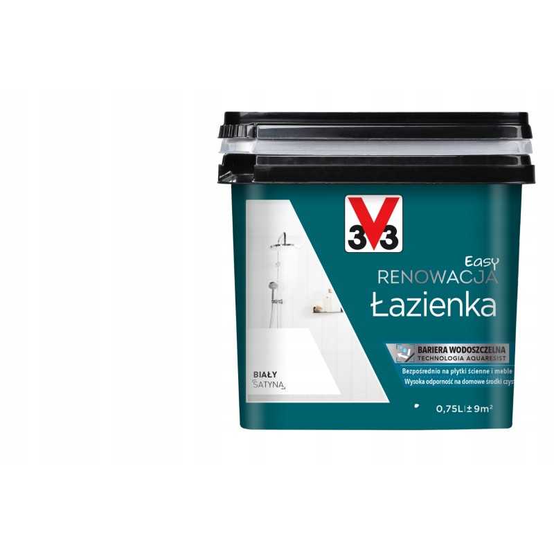 3V3 Easy Renowacja Łazienka Kafli PCV to idealne rozwiązanie do szybkiej odnowy boazerii. Farba akrylowa w kolorze białym nadaje się doskonale do płytek łazienkowych. Dzięki stopniowi połysku w satinie i deklarowanej wydajności 9 możemy cieszyć się trwałym efektem. Czas schnięcia w dotyku to zaledwie 8 godzin, a pełne wyschnięcie zajmuje 48 godzin. Sposób rozcieńczania tego produktu jest bardzo prosty - wystarczy woda. Produkt Nowy, zapakowany w opakowanie o wielkości 0,75L.