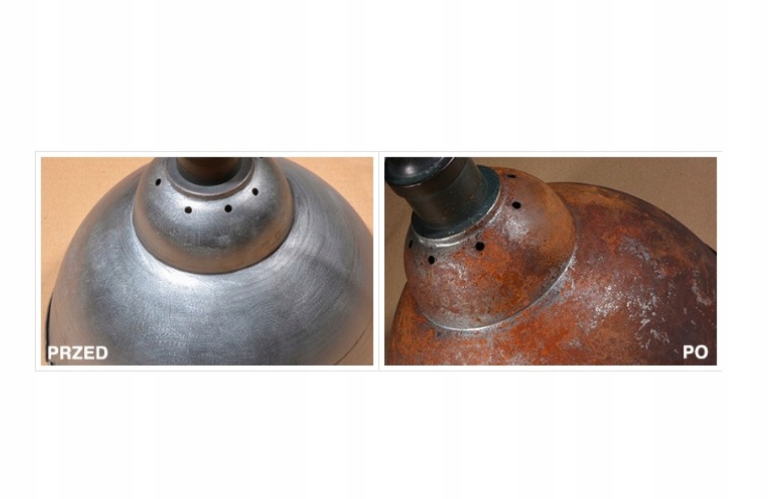 W celu uzyskania najlepszego efektu naturalnej rdzy polecamy spryskanie powierzchni i pozostawienie nierównomiernie rozprowadzonego produktu.