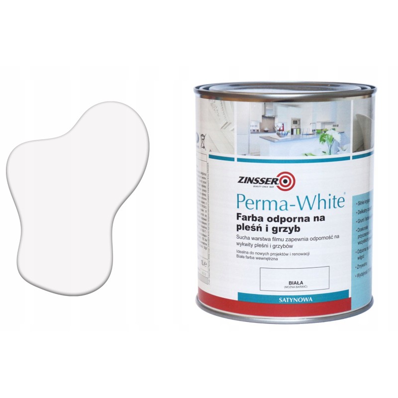 Farba chroniąca przed pleśnią PERMA WHITE 1 l Biała Satyna ZINSSER to doskonały wybór do ochrony ścian przed pleśnią. Produkt marki Zinsser cechuje się wysoką jakością oraz trwałością. Farba akrylowa w kolorze białym o matowym stopniu połysku doskonale sprawdzi się w każdym pomieszczeniu. Dzięki specjalnej formule zapobiega rozwojowi pleśni, co zapewnia długotrwałą ochronę ścian. Farba chroniąca przed pleśnią PERMA WHITE jest łatwa w aplikacji i doskonale kryje powierzchnię. Wielkość opakowania wynosi 1 litr.