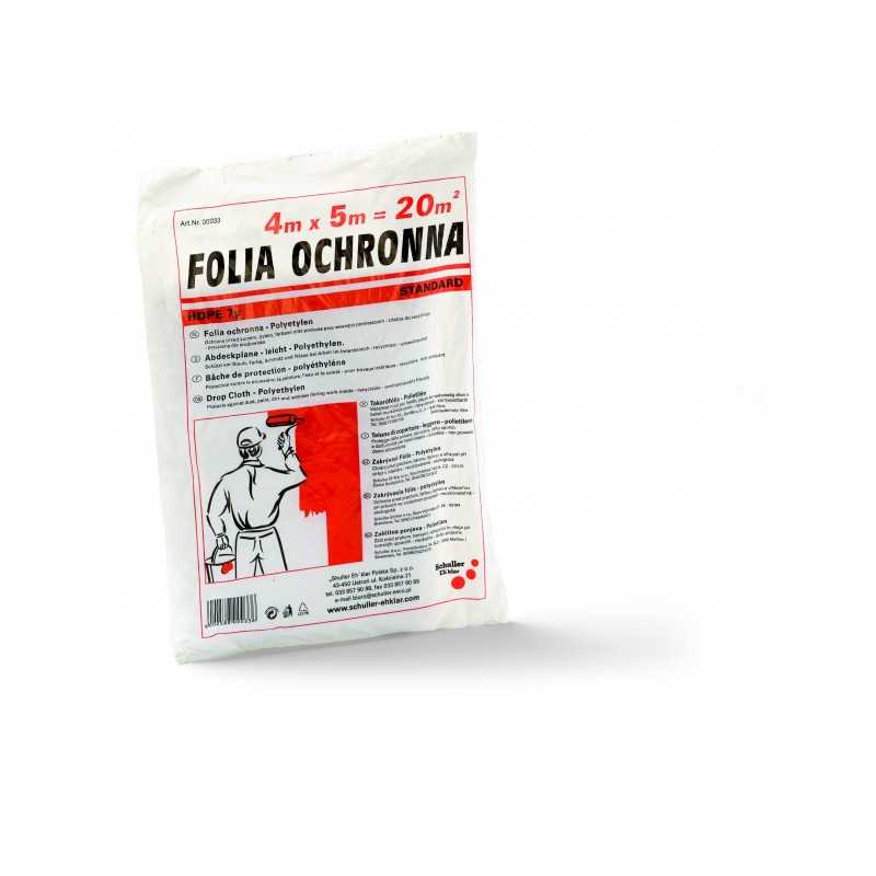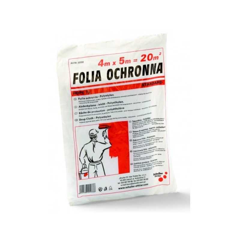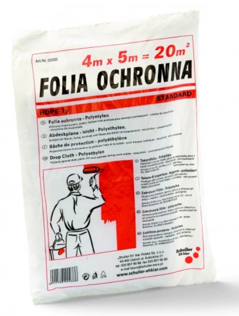 Nowa folia ochronna malarska 4x5 zapewnia 20m2 powierzchni do ochrony podczas prac remontowych. Produkt marki Schuller jest opakowany w oryginalne opakowanie, a kod producenta to 00033. Folia ma grubość 0,01 mm i jest wyposażona w praktyczny pasek taśmy maskującej. Szerokość wynosi 5 metrów, a długość 4 metry, co zapewnia odpowiednią ochronę podłóg, mebli i innych powierzchni podczas malowania. Idealna do użytku domowego oraz profesjonalnych projektów malarskich.