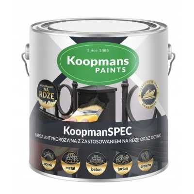 KoopmanSpec to wielozadaniowy produkt przeznaczony do ochronno-dekoracyjnego i antykorozyjnego zabezpieczania wielu rodzajów powierzchni. Dzięki unikalnej formule można go stosować bezpośrednio na podłoże, bez konieczności użycia farb podkładowych.