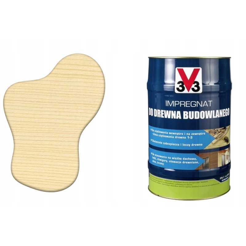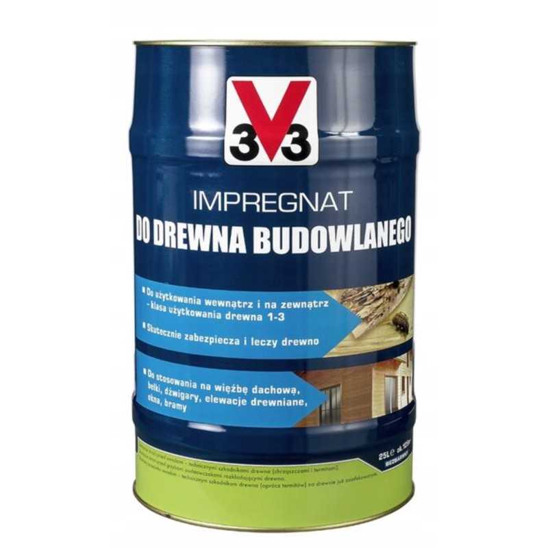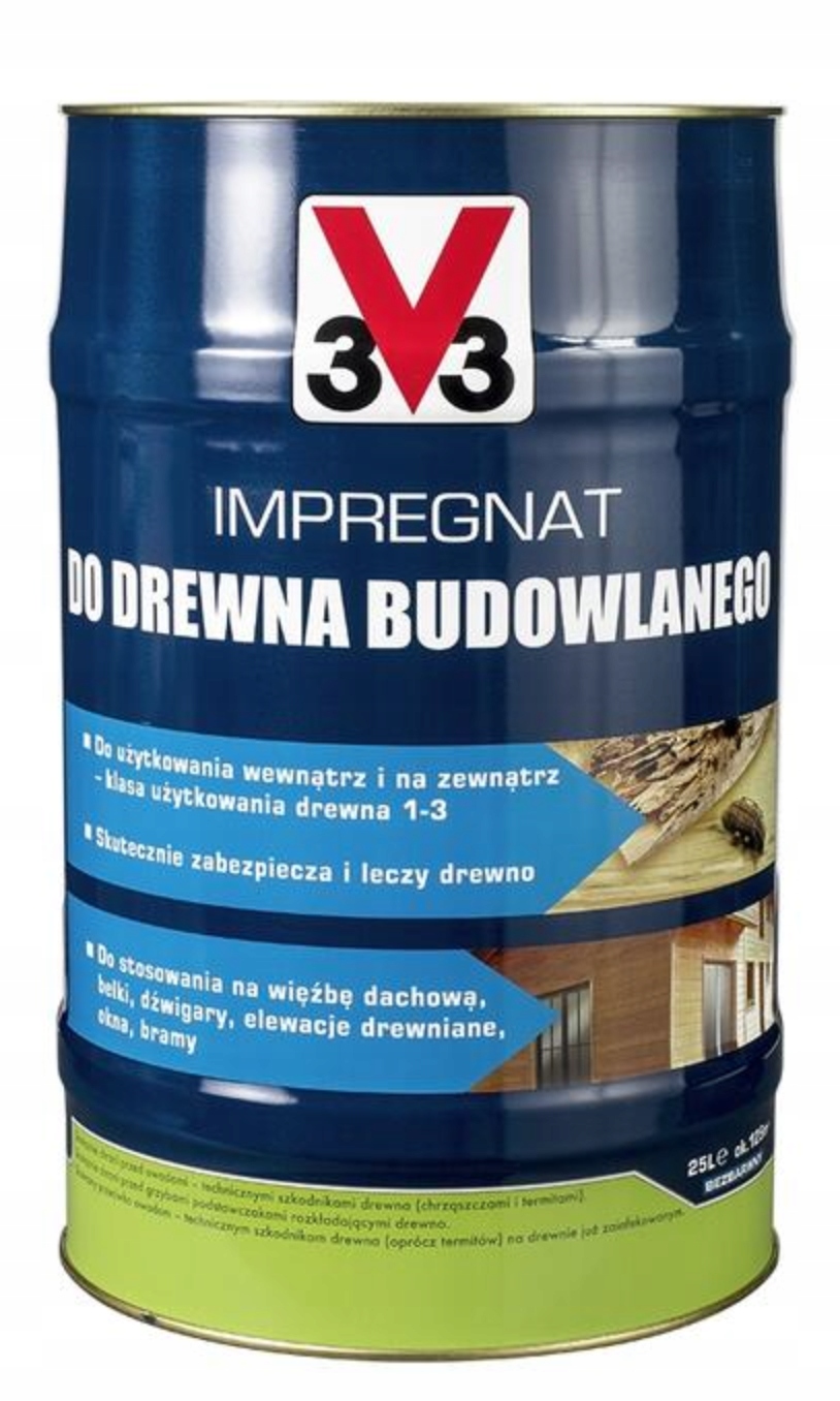 Impregnat do drewna konstrukcyjnego plus V33 przeznaczony jest do drewna w 1, 2 i 3 klasie użytkowania, tj. wewnątrz i na zewnątrz, do elementów drewnianych nie mających bezpośredniego kontaktu z gruntem ani wodą powierzchniową, ale narażonych na częste bądź okresowe nawilżanie.