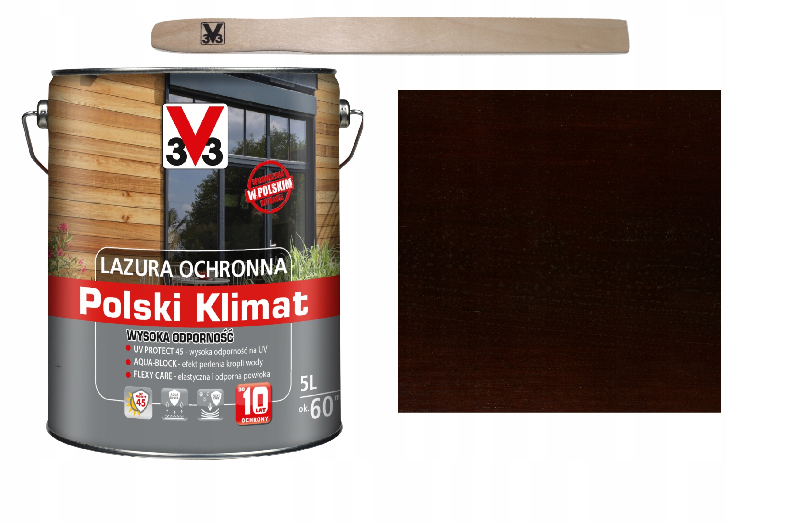 3V3 Wydajna Lazura o Wysokiej Odporności na Polski Klimat UV, to doskonały wybór do ochrony drewnianych powierzchni na zewnątrz przez wiele lat. Ta mocna lazura marki V33 zapewnia niezawodną ochronę przed szkodliwym działaniem promieni UV i warunków atmosferycznych. Dzięki grzybobójczym i owadobójczym właściwościom, drewno pozostaje wolne od uszkodzeń. Produkt cechuje również szybkie schnięcie (12 godzin) oraz łatwe rozcieńczanie rozcieńczalnikiem. Pojemność 5000 ml gwarantuje wydajne pokrycie nawet dużych powierzchni.
