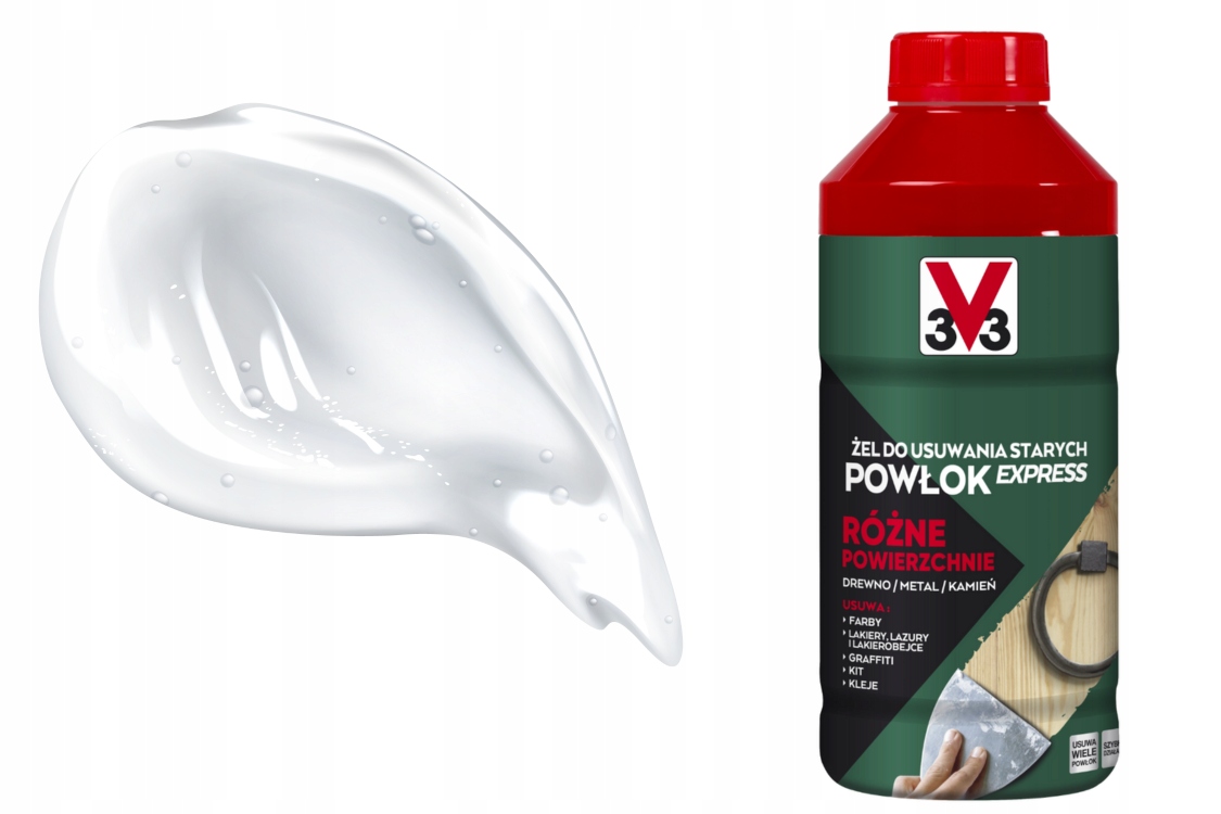 Usuwanie wszelkich jednokomponentowych powłok wykończeniowych: farb, lakierów, powłok ochronnych. Nie należy go stosować na PCV.