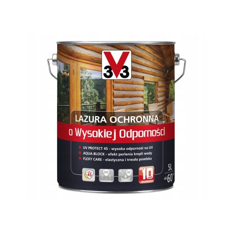 Nasza lazura ochronna o wysokiej odporności V33 drewno egzotyczne 5L to idealne rozwiązanie do zabezpieczenia drewnianych powierzchni na zewnątrz. Dzięki jej dekoracyjnym i ochronnym właściwościom, Twój dom będzie wyglądał pięknie i dłużej zachowa swoje pierwotne walory. Ten beżowy lakierobejca o efekcie satynowym zapewnia nie tylko ochronę przed promieniowaniem UV i wodą, ale także chroni drewno przed ogniem. Dzięki łatwej aplikacji pędzlem i szybkiemu czasowi schnięcia, możesz cieszyć się efektami jej działania już po 12 godzinach.