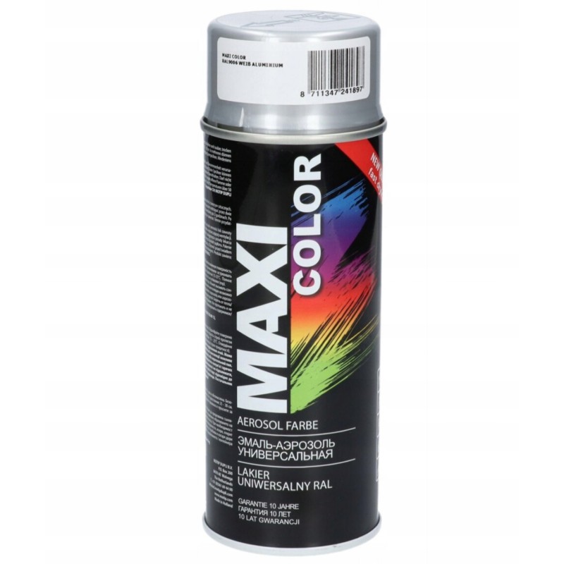 Motip Lakier uniwersalny MAXI COLOR srebrny ral 9006 połysk spray 400 ml to dekoracyjny, szybkoschnący lakier w sprayu nitrocelulozowy o wszechstronnym zastosowaniu.