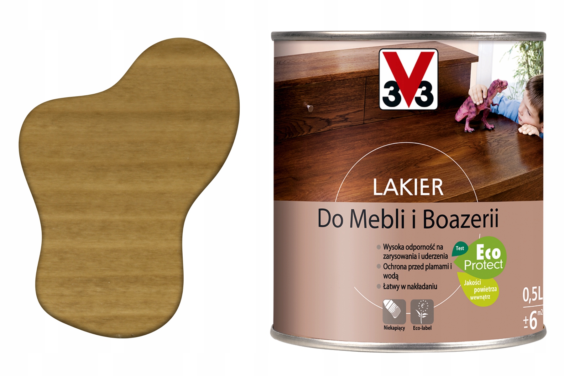 3V3 Lakier Akrylowy Wodny Eko Odporny Do Drewna Renowacji Podłóg Schodów 500ML to doskonały wybór dla tych, którzy chcą odnowić drewniane powierzchnie w swoim domu. Ten innowacyjny lakier marki V33 charakteryzuje się wysoką jakością i trwałością. Dzięki swojej wodoodpornej formule doskonale sprawdzi się do stosowania wewnątrz pomieszczeń. Jego dekoracyjny efekt połysku nadaje drewnianym podłogom i schodom elegancki wygląd. Produkt ten jest łatwy w aplikacji, można go nakładać za pomocą natrysku, pędzla lub wałka. Dostępny w pojemności 500ML.