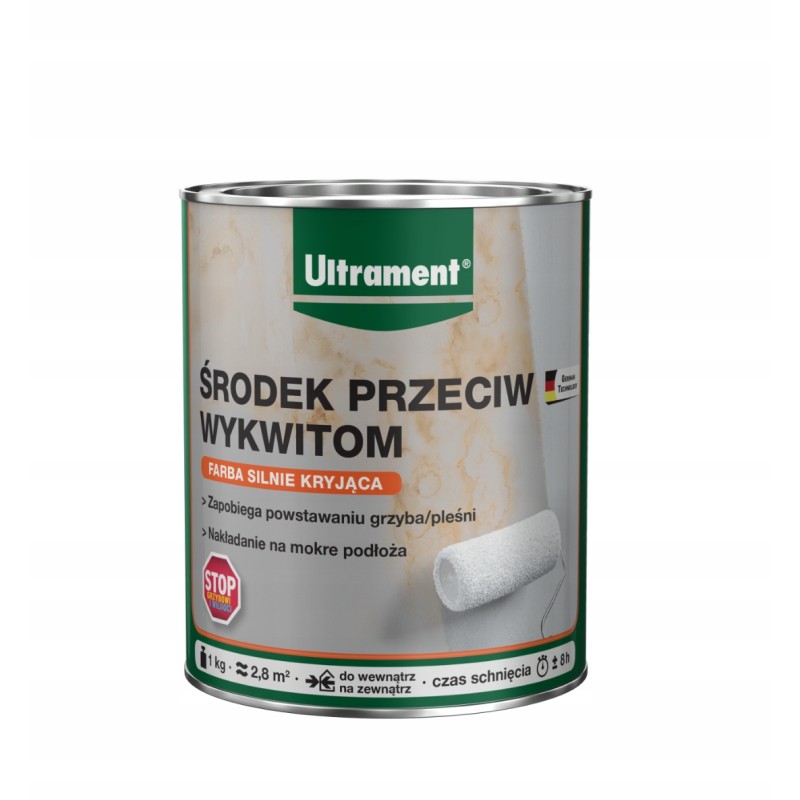 Ultrament Środek Przeciw Wykwitom na Ścianie to farba przeciw pleśni o wadze 1kg. Jest to nowy produkt, zapakowany w oryginalne opakowanie marki Ultrament. Ten specjalistyczny środek antygrzybiczny pomoże Ci skutecznie pozbyć się nieestetycznych wykwitów na ścianach. Produkt ten jest idealny do użytku w pomieszczeniach, gdzie wilgoć sprzyja rozwojowi pleśni. Dzięki temu preparatowi Twoje ściany będą wolne od grzybów i będą wyglądać świeżo i czysto.