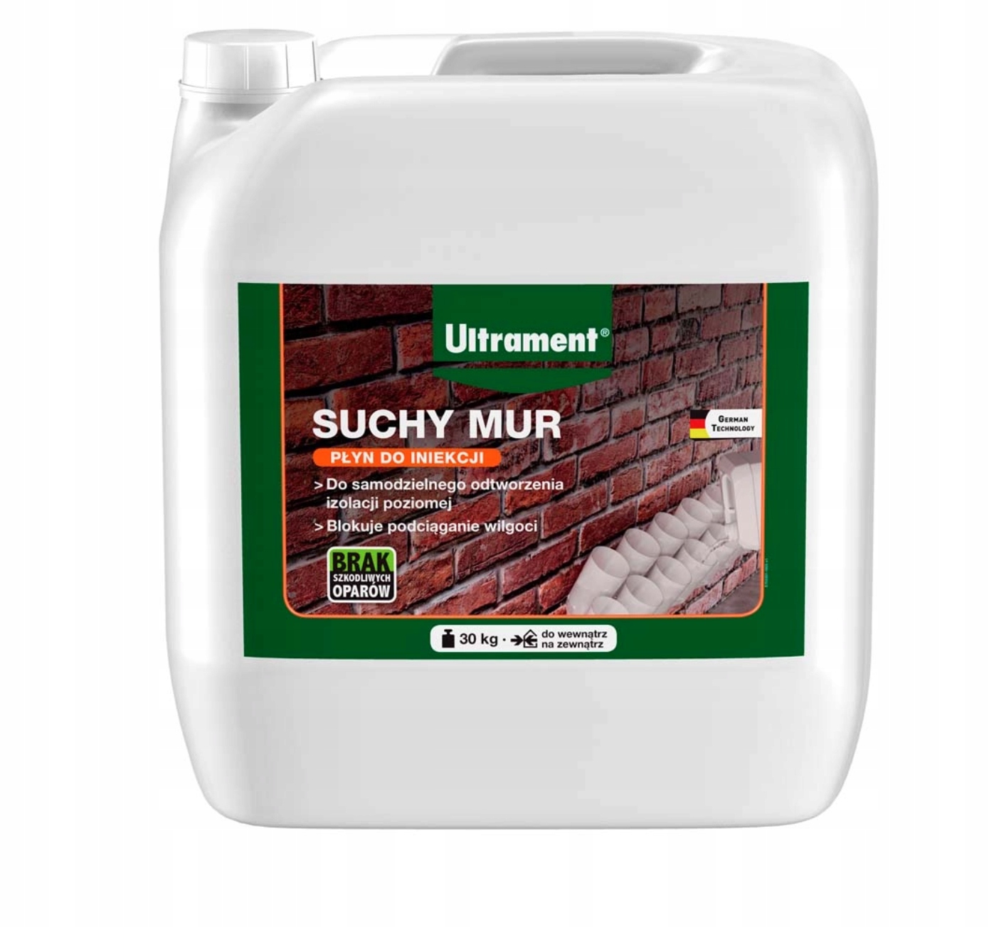 Ultrament Suchy Mur to preparat do iniekcji krystalicznej muru o pojemności 30 litrów. Produkt jest nowy, zapakowany w oryginalne opakowanie marki Ultrament. Kod producenta to 4002019860114, a waga wynosi 32 kg. Stan produktu z opakowaniem jednostkowym to 30 kg. Preparat ten należy do kategorii materiałów izolacyjnych i zapewnia skuteczną ochronę przed wilgocią oraz innymi czynnikami atmosferycznymi. Doskonały wybór dla osób poszukujących wysokiej jakości rozwiązań do izolacji murów.