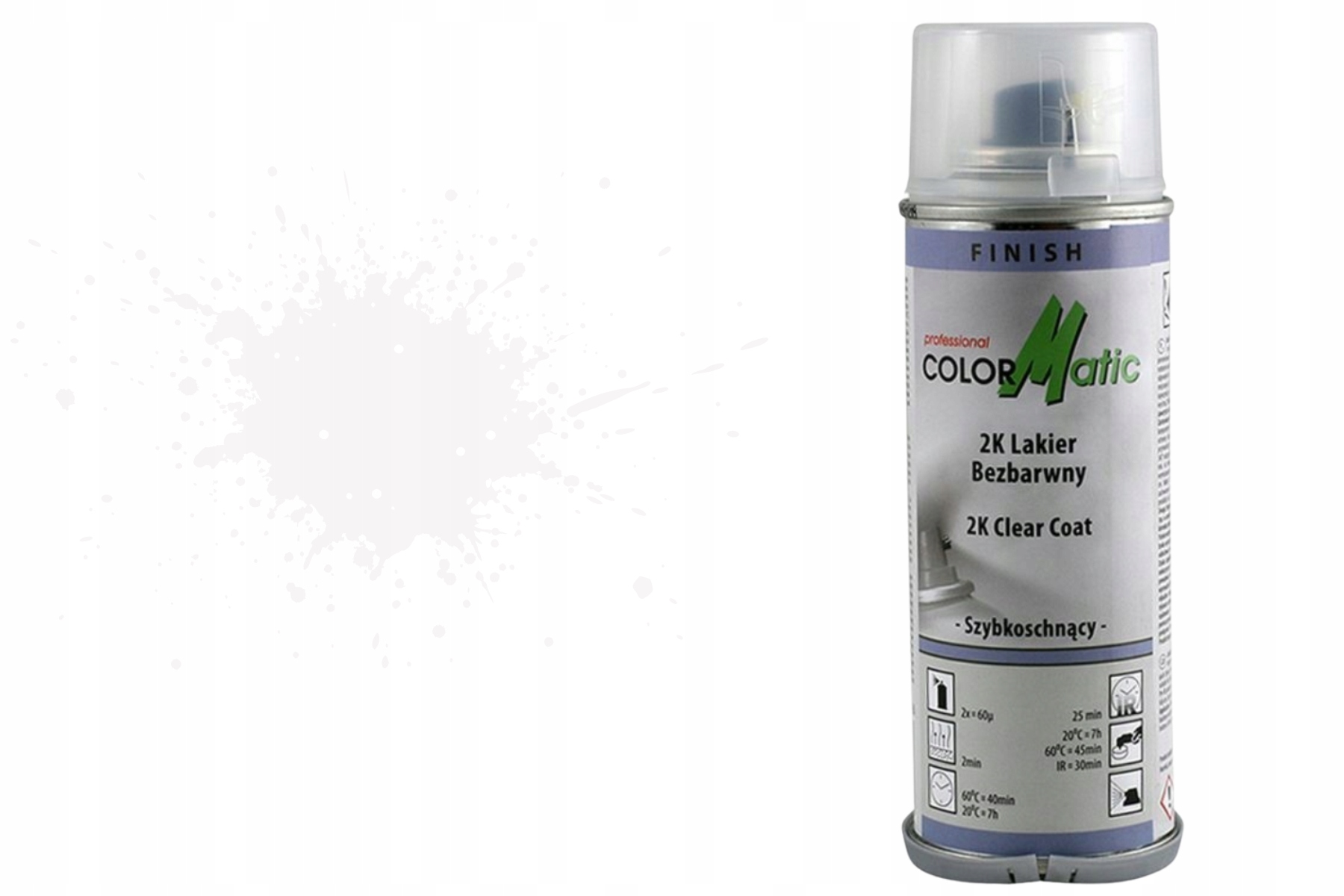 Dystans nanoszenia to 15 - 20 cm. Nałożyć przynajmniej 2 warstwy bezbarwnego lakieru 2K w odstępach 2 minuty pomiędzy kolejnymi warstwami.