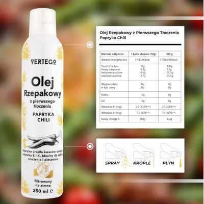 ✅ Zdrowy i naturalny skład – zawiera 98% oleju rzepakowego i 2% naturalnego aromatu papryki chili, bez konserwantów i sztucznych dodatków.