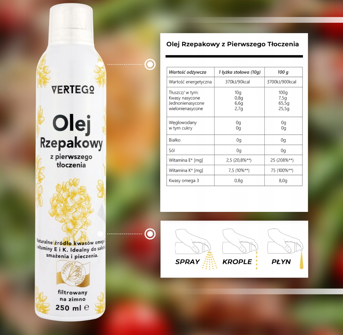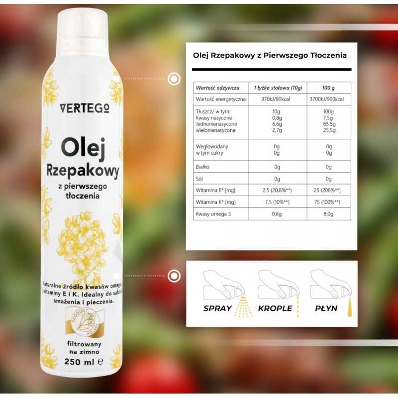 ✅ Naturalny i zdrowy skład – 100% czysty olej rzepakowy bez konserwantów i dodatków, bogaty w kwasy omega-3 oraz witaminy E i K.