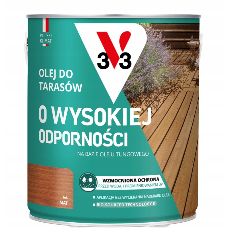 Prezentujemy olej do tarasów o wysokiej odporności marki V33, idealny do drewnianych powierzchni na zewnątrz. Produkt jest nowy i zapakowany w oryginalne opakowanie. Olej znajduje się w 2,5 litrowym wiadrze, gotowym do użycia. Posiada kod producenta: 3153895232319 oraz EAN: 3153895232319. Ten produkt zapewnia nie tylko ochronę, ale także podkreśla naturalne piękno drewna. Dzięki niemu Twój taras będzie wyglądał doskonale przez wiele sezonów.