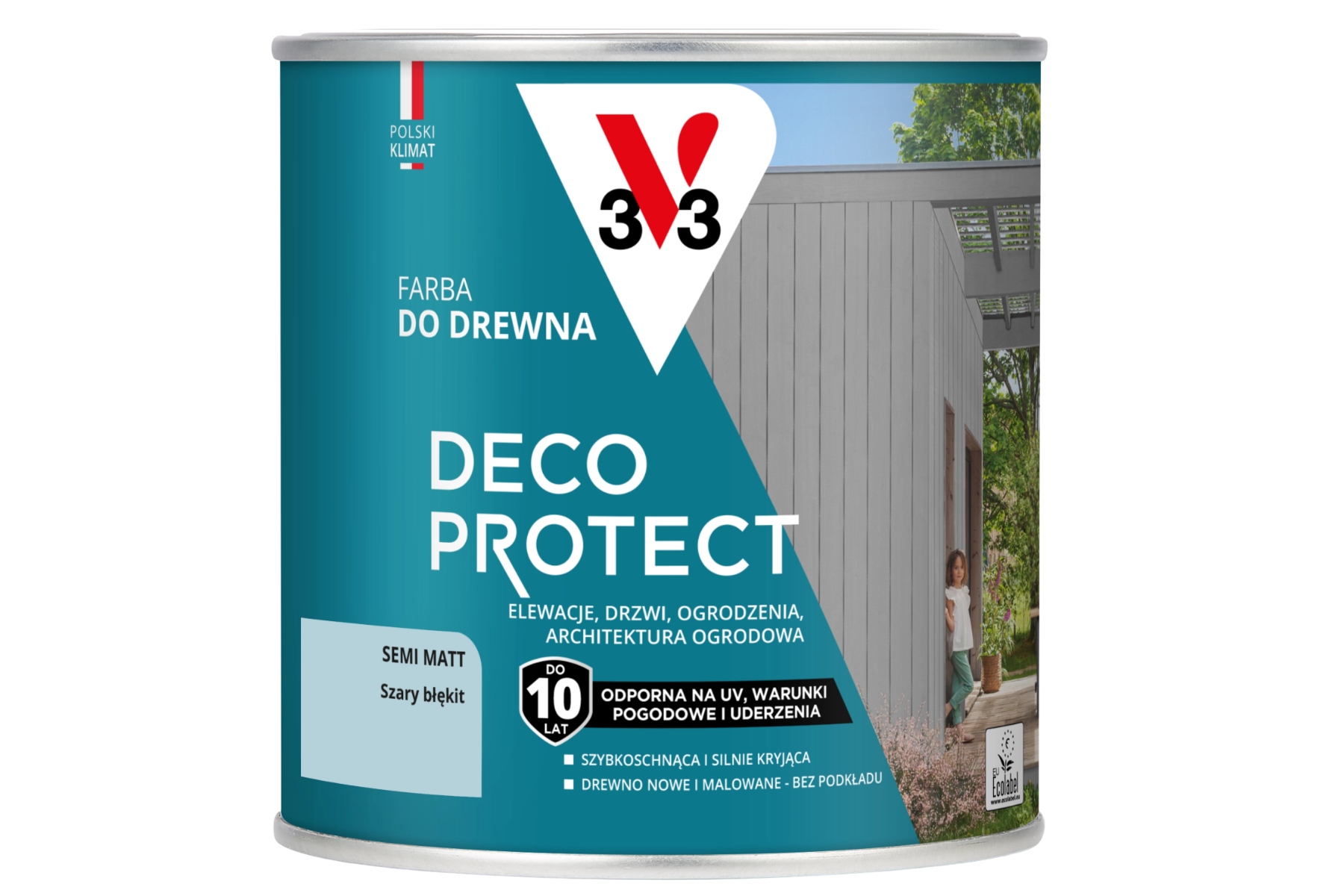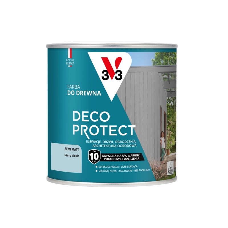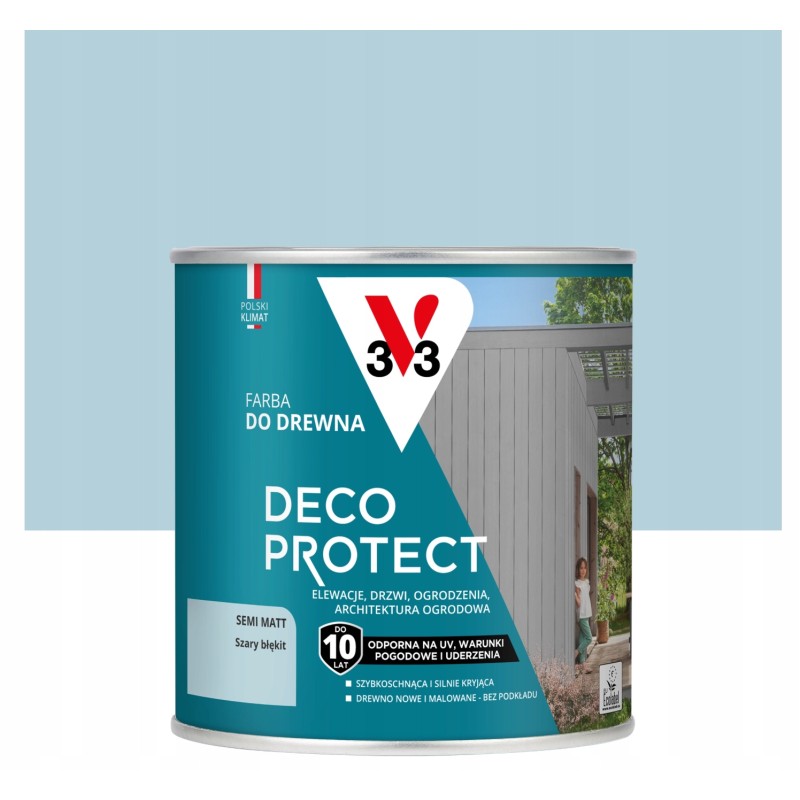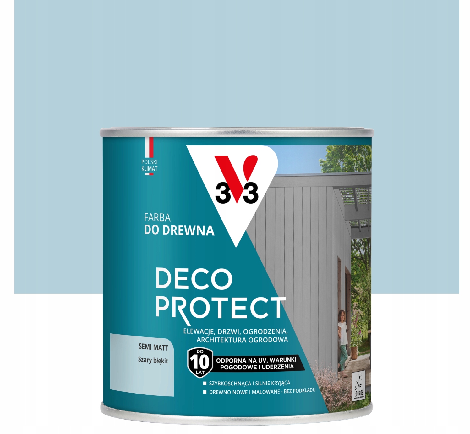 Farba do drewna Deco Protect w kolorze szarym błękit to doskonały wybór do ochrony drewnianych powierzchni na zewnątrz. Produkt marki V33 cechuje się wysoką jakością oraz niezawodnością. Pojemność opakowania wynosi 0.5 litra, co wystarcza na pokrycie większych obszarów. Farba posiada funkcję ochronną, która zapewnia trwałą ochronę przed warunkami atmosferycznymi. Stan produktu jest nowy, a sprzedawany jest w oryginalnym opakowaniu. Deco Protect to idealne rozwiązanie dla wszystkich, którzy cenią sobie estetykę i ochronę drewnianych elementów na zewnątrz.