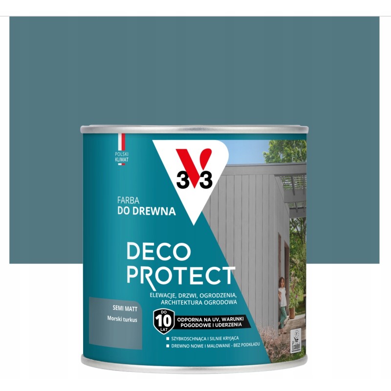 Farba do drewna Deco Protect Morski turkus 0.5 l V33 to idealne rozwiązanie dla ochrony drewnianych powierzchni na zewnątrz. Produkt marki V33 charakteryzuje się wysoką jakością i pojemnością 0.5 litra. Farba ta doskonale sprawdza się w ochronie drewna przed warunkami atmosferycznymi, zapewniając mu długotrwałą ochronę. Dzięki swoim właściwościom ochronnym, produkt ten zapewni długotrwałą ochronę drewna, jednocześnie nadając mu nowy, świeży wygląd. Farba do drewna Deco Protect Morski turkus 0.5 l V33 to doskonały wybór dla osób poszukujących skutecznego środka do zabezpieczenia swoich drewnianych elementów na zewnątrz.