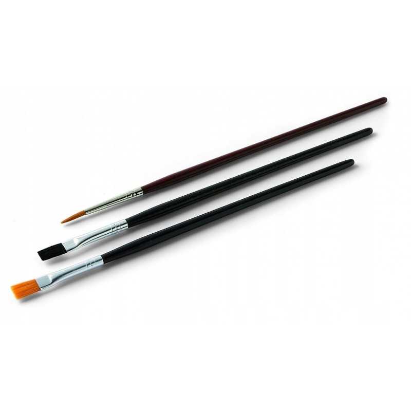 W skład zestawu wchodzi trzy pędzelki o różnych rozmiarach (3, 4 i 6), co zapewnia dużą elastyczność przy wykonywaniu różnorodnych prac. Pędzelek rozmiar 3 jest okrągły i idealnie sprawdza się do precyzyjnych prac i drobnych poprawek. Natomiast pędzelki płaskie o rozmiarach 4 wykonany z włosia kuny czerwonej i 6 typu Gussow umożliwiają nanoszenie farby na większe powierzchnie, co gwarantuje wykończenie najwyższej jakości.