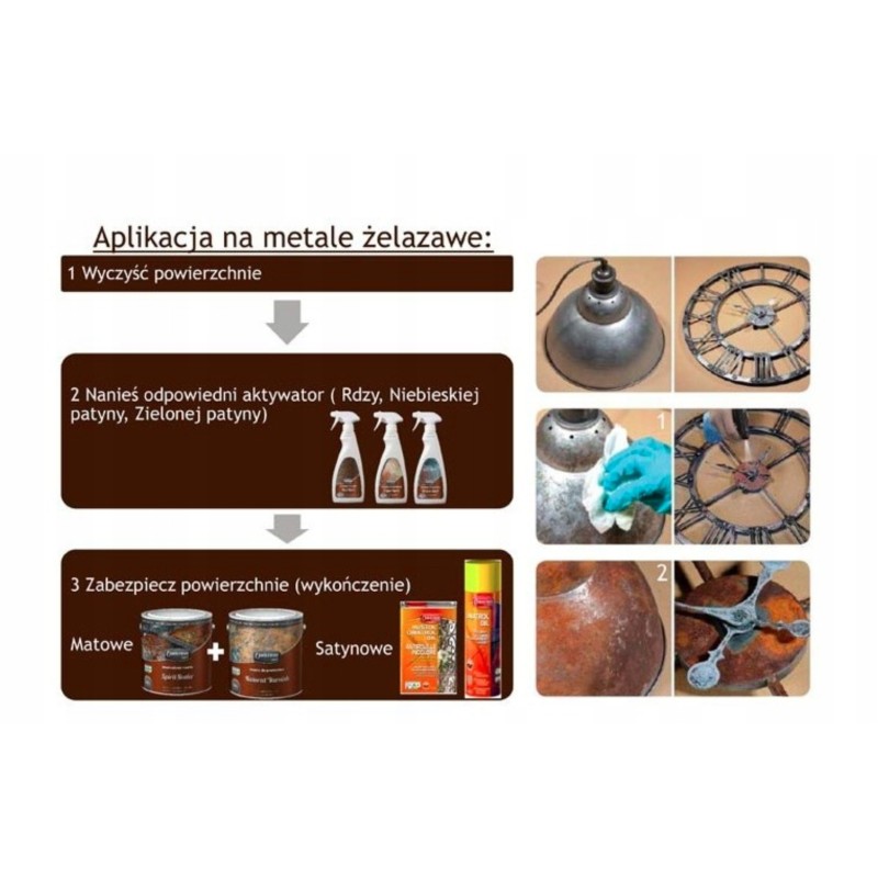 W celu uzyskania najlepszego efektu naturalnej rdzy polecamy spryskanie powierzchni i pozostawienie nierównomiernie rozprowadzonego produktu.
