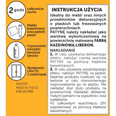 ✅ Łatwość Aplikacji: Patyna może być nakładana zarówno na surowe drewno, jak i jako warstwa wykończeniowa na farbę kazeinową, co czyni ją wszechstronnym produktem do dekoracji.