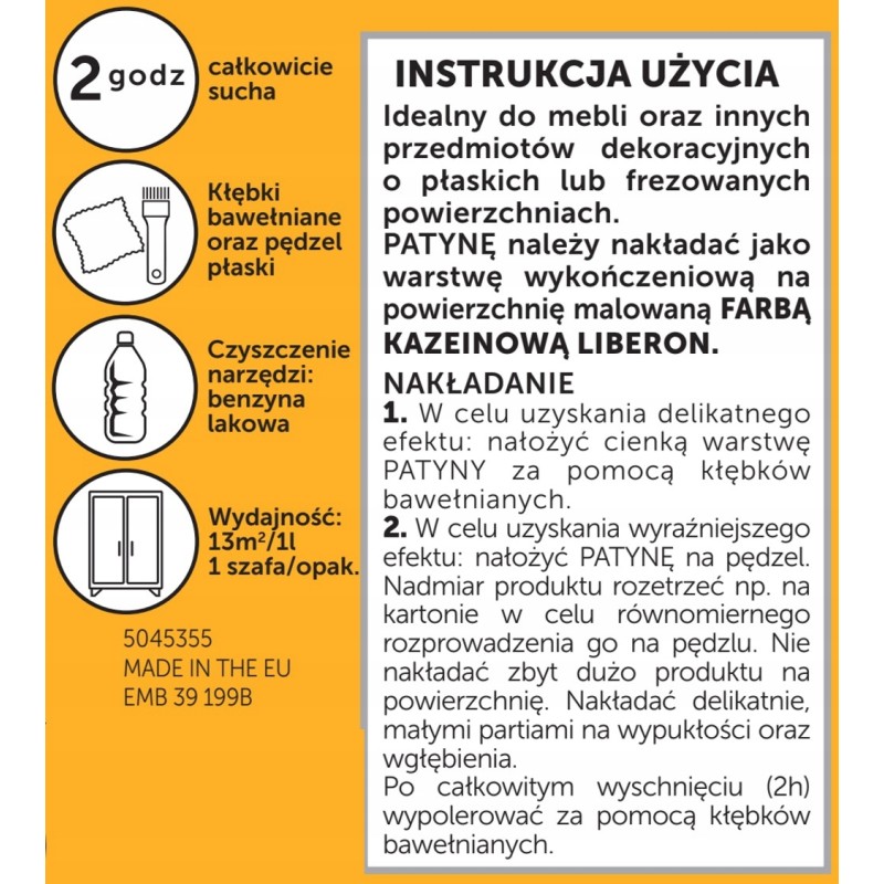 ✅ Łatwość Aplikacji: Patyna może być nakładana zarówno na surowe drewno, jak i jako warstwa wykończeniowa na farbę kazeinową, co czyni ją wszechstronnym produktem do dekoracji.