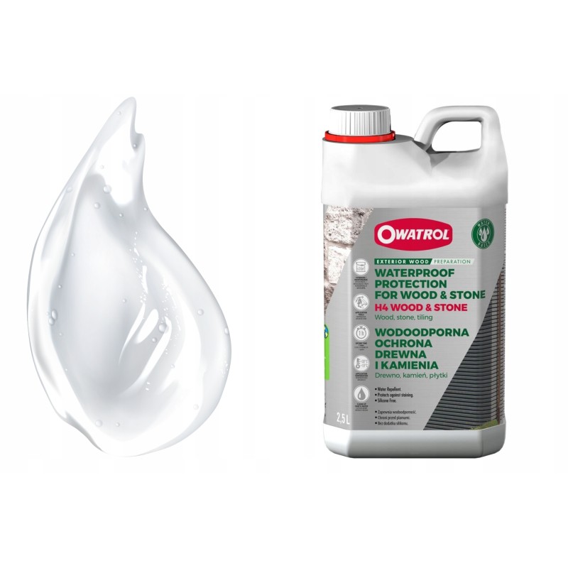 H4 Wood od OWATROL to nowoczesny środek hydrofobowy, który doskonale odpycha wodę i zapewnia ochronę drewna. Produkt jest fabrycznie nowy, dostarczany w oryginalnym opakowaniu z kodem producenta H4 Wood 2,5l. Marka Owatrol gwarantuje wysoką jakość i skuteczność działania. Kod EAN: 0763289101614. Środek należy do kategorii środków pielęgnujących i naprawczych, idealny do zabezpieczania drewnianych elementów przed działaniem wilgoci i warunków atmosferycznych. Dzięki niemu Twój drewniany ogród czy meble będą dłużej zachowywały swój naturalny urok.