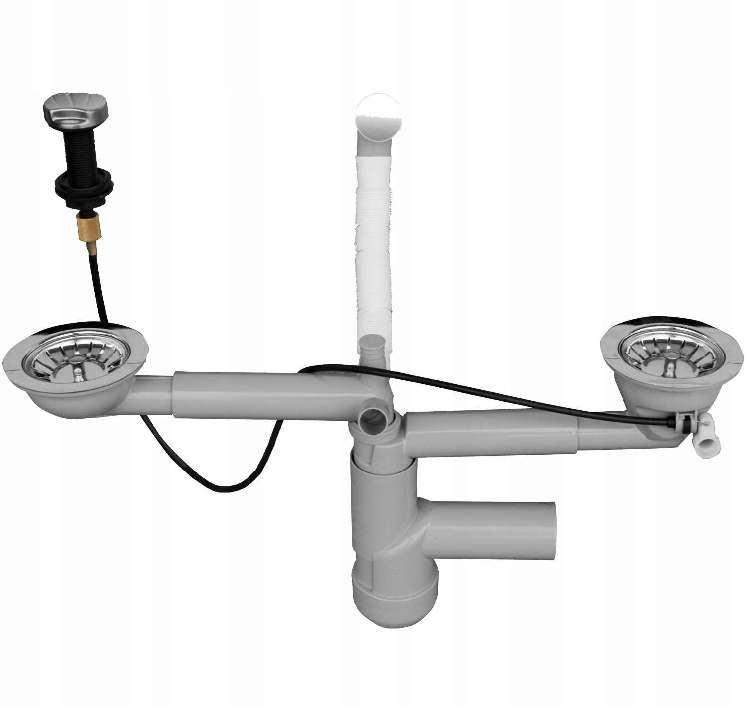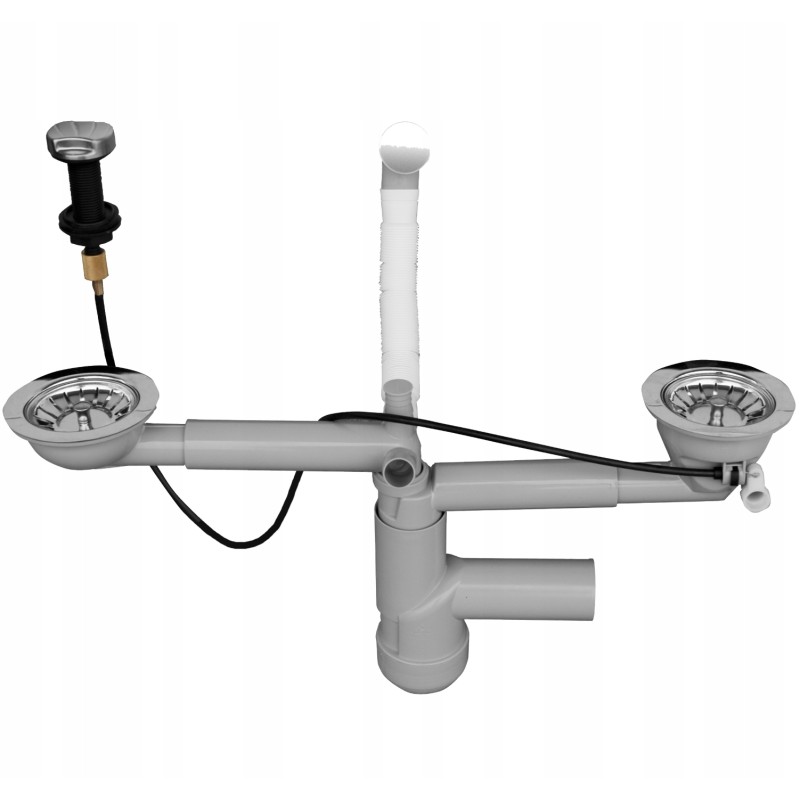 ✅ Dwukomorowa konstrukcja – idealna do zlewów z dwiema komorami, zapewnia efektywne odprowadzanie wody z obu komór jednocześnie.