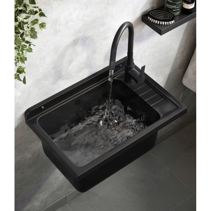 ✅ Nowoczesny wygląd – czarny kolor nadaje zlewozmywakowi elegancki, nowoczesny charakter, który dobrze komponuje się z różnymi stylami wnętrz.